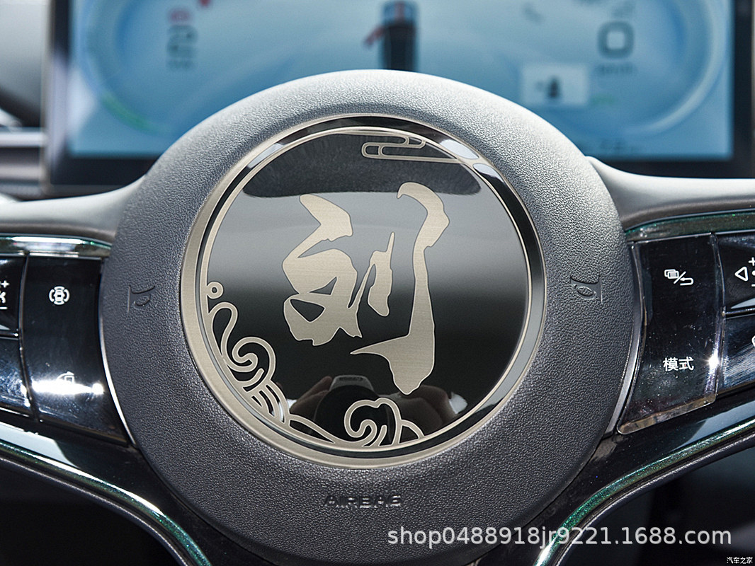 BYD 바이디 하이얼 플러스, 하이돌, 하이씰 스티어링 휠, 위아래로 놓인 자동차 로고, 인테리어 용품, 자동차 개조