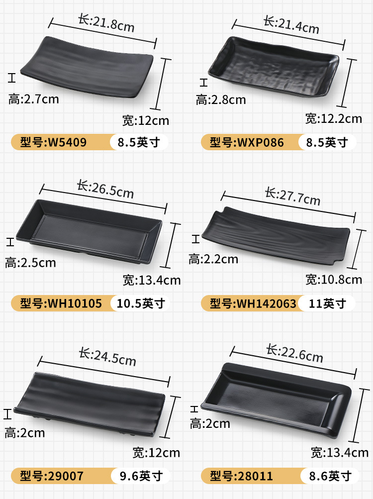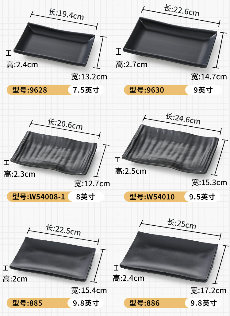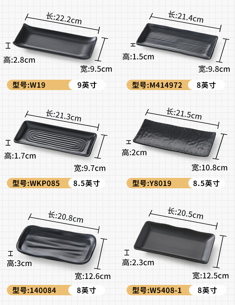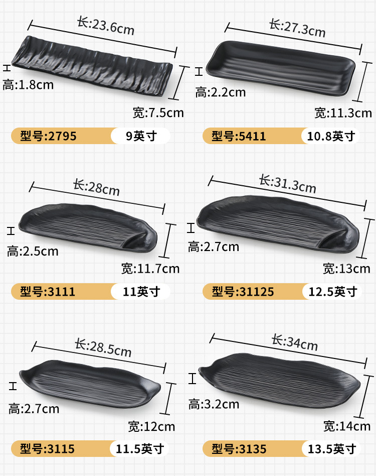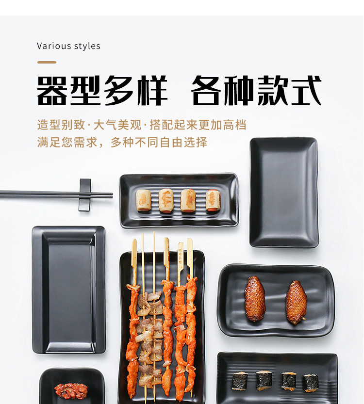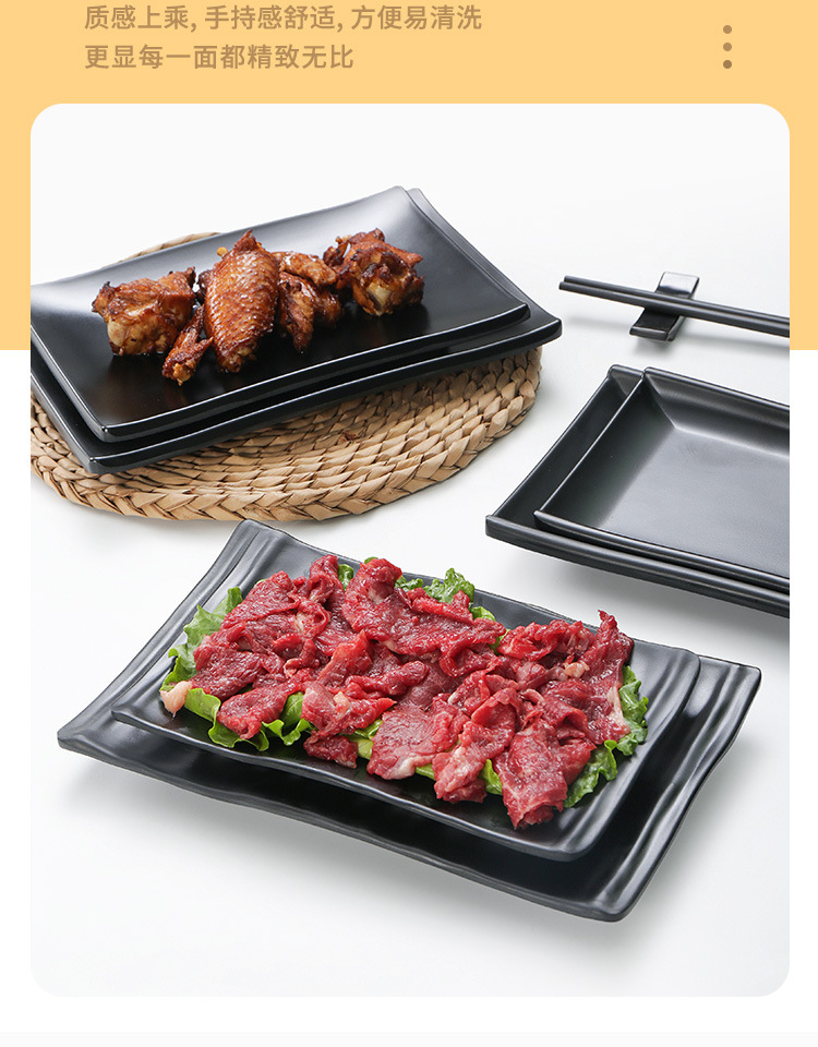 멜라민 식기 쇠고기 냄비 접시 서빙 접시 직사각형 플라스틱 긴 접시 디너 플레이트 상업용 긴 접시 플랫 플레이트