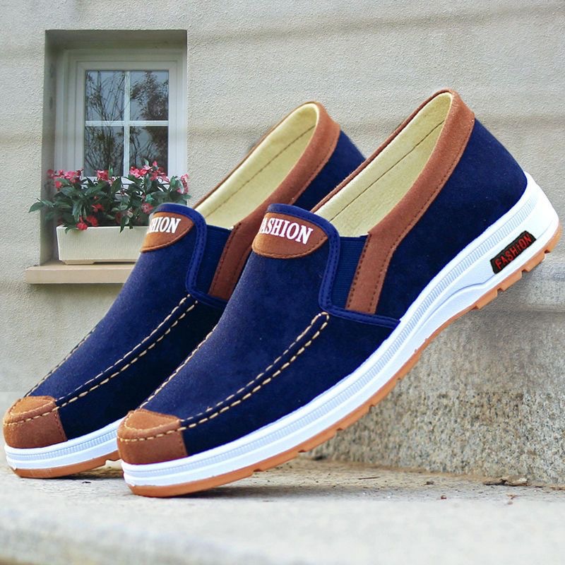 올드 베이징 천 신발 남성 신발 봄 남성 캐주얼 신발 슬립 온 통기성 캔버스 신발 중년 및 노인 로우 컷 아빠 신발