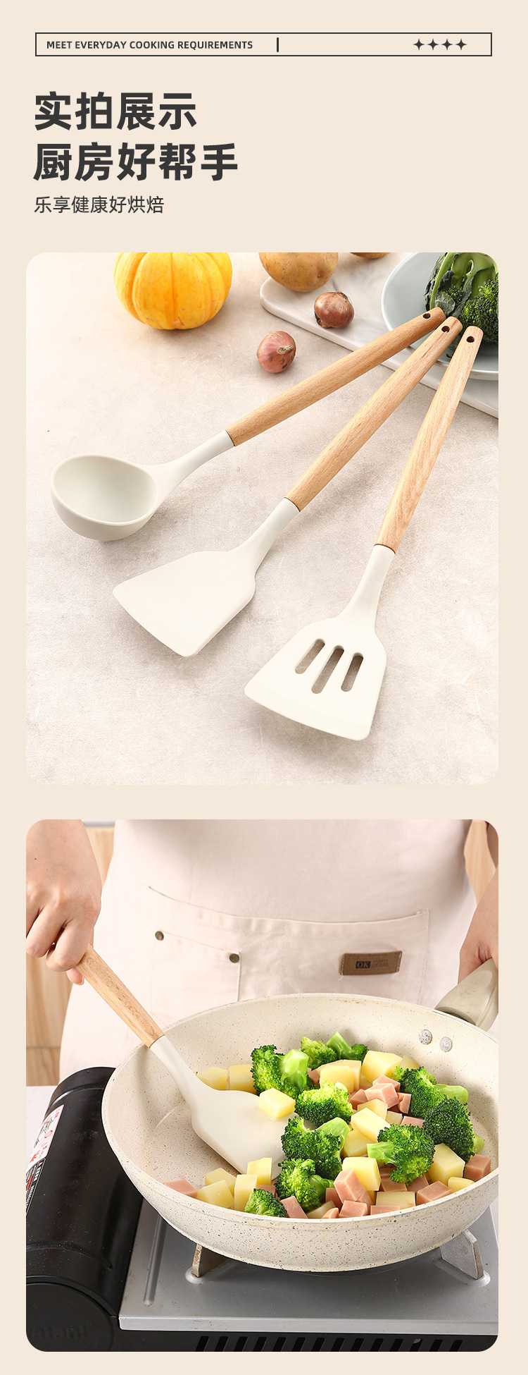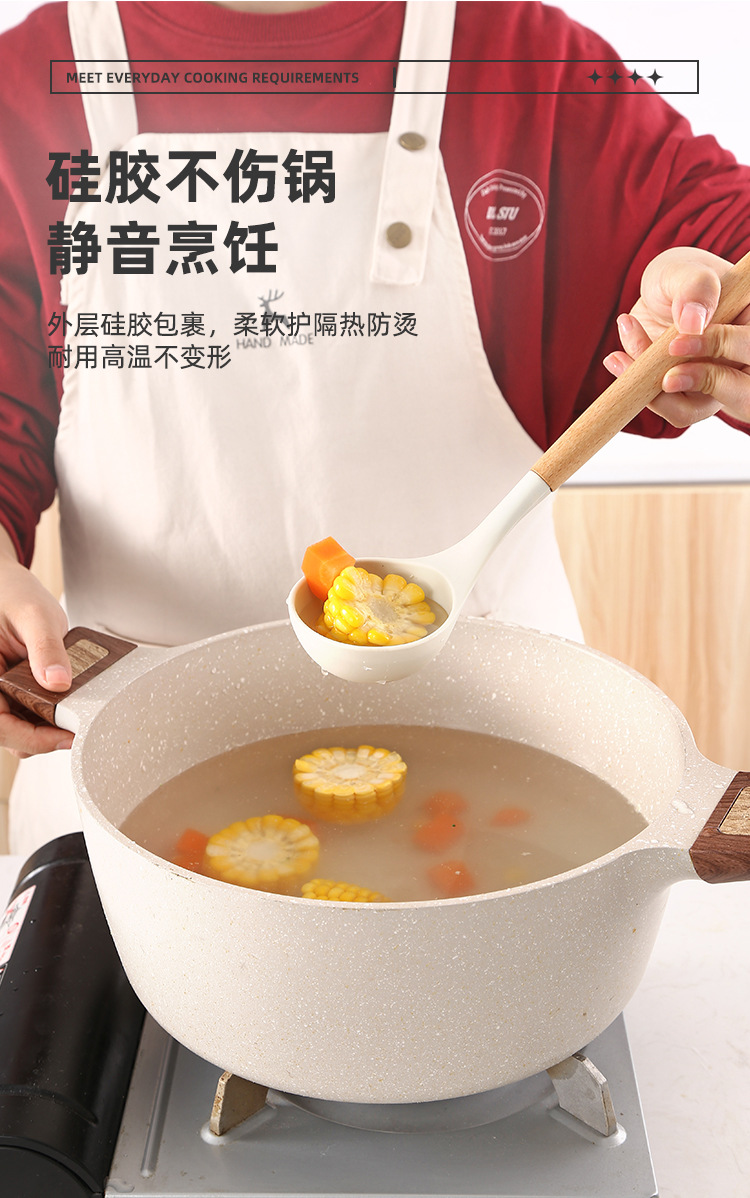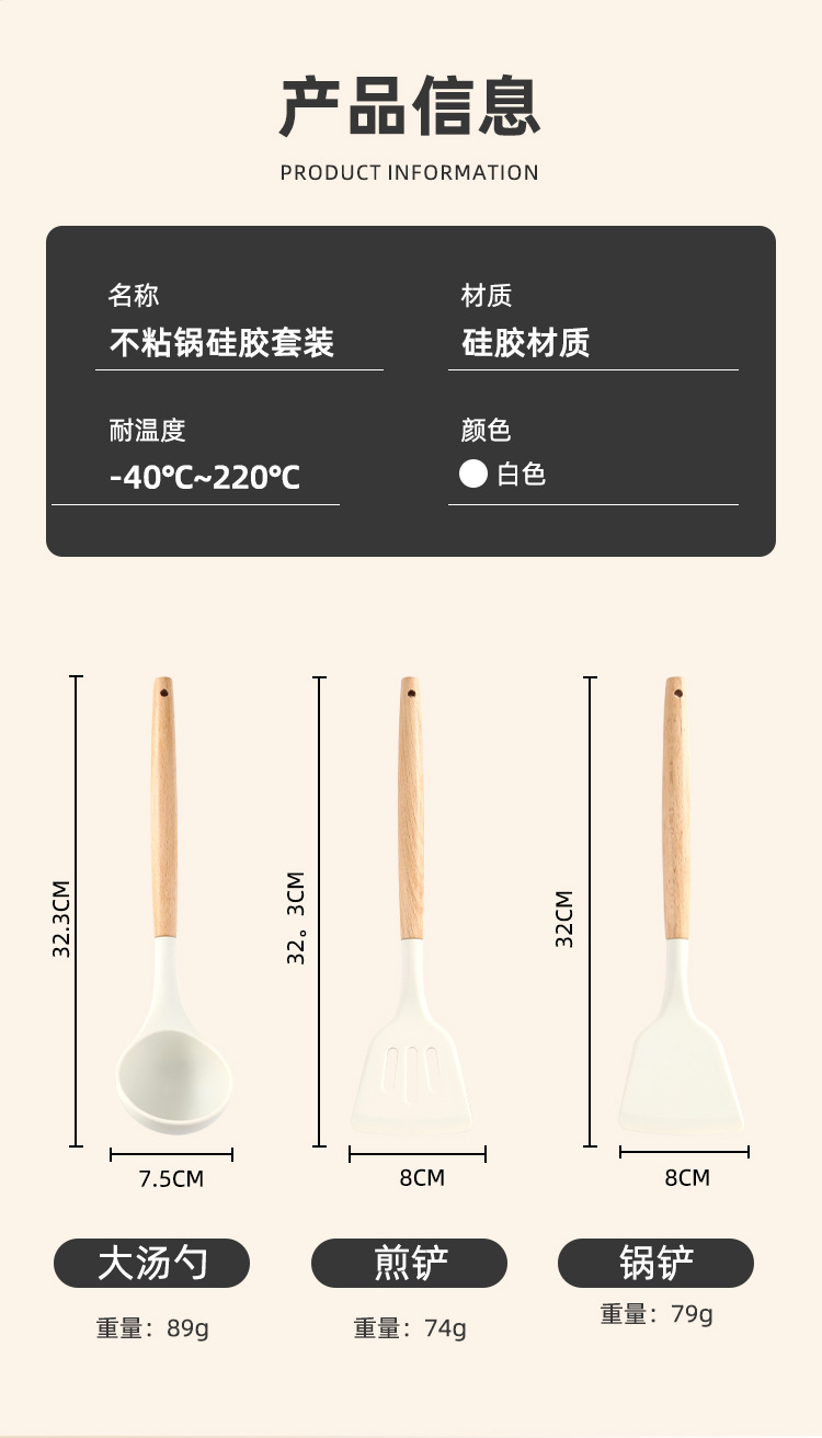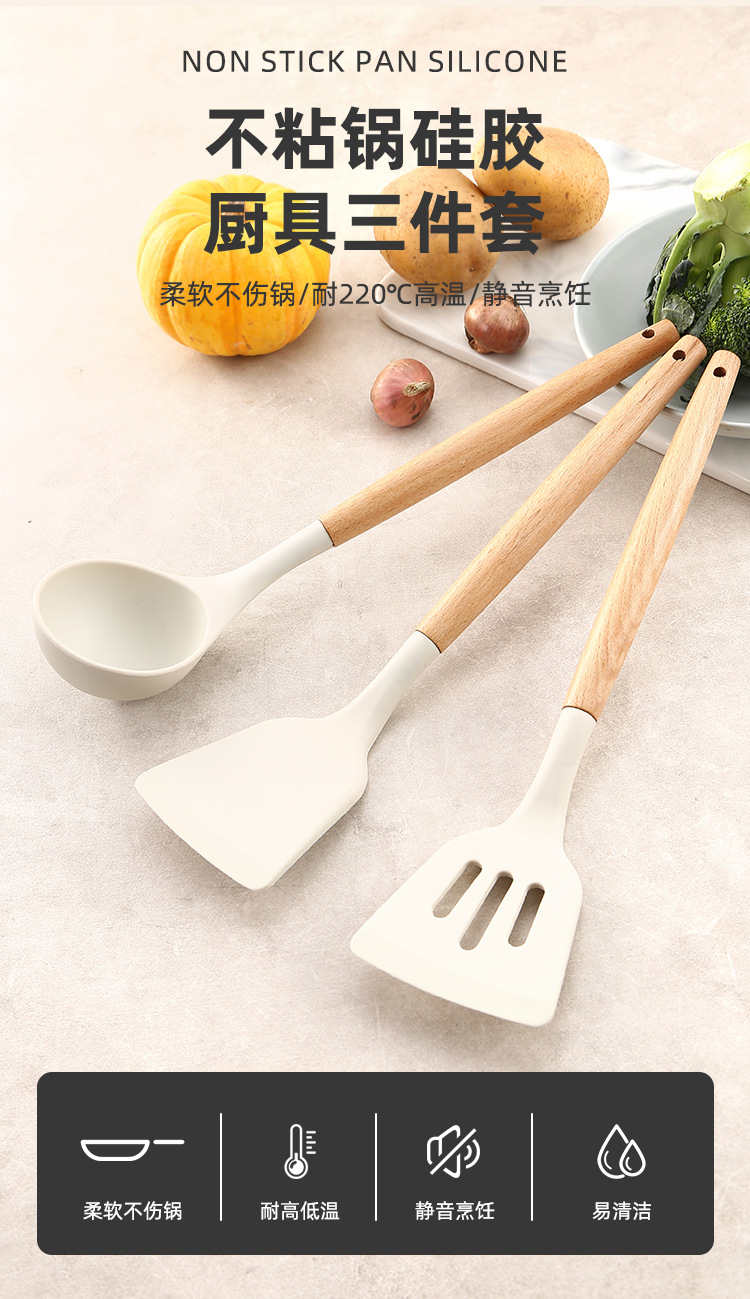 INS 흰색 나무 손잡이 실리콘 주걱 주방 3 개 세트 실리콘 주걱 세트 주방 수프 스푼 요리 주방 주걱 주걱