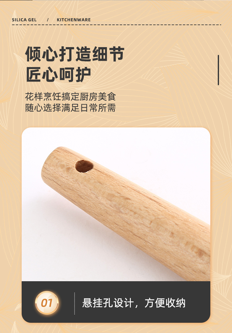GJ-9 나무 손잡이 튀김 주걱 오프화이트