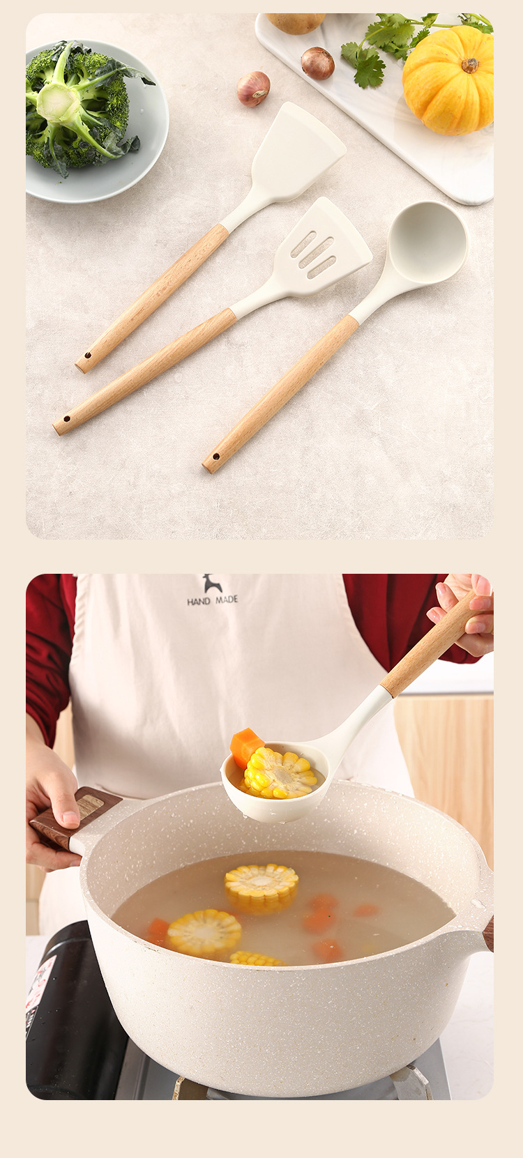 GJ-9 나무 손잡이 주걱 오프화이트