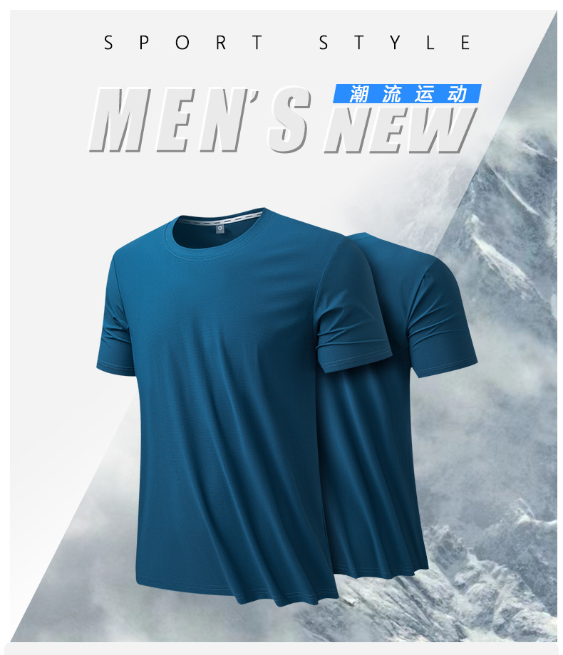 여름용 아이스감 통기성 반팔 티셔츠, 초냉감 라운드넥 단색 스포츠 러닝 남성용 속건성 흡습 발한성 상의