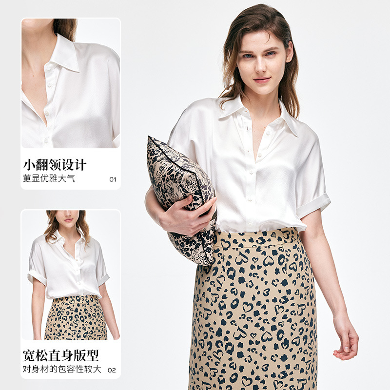 여성용 실크 반팔 셔츠 2025 신상 봄 탑 여름 아우터 기본 베이스 루즈 셔츠