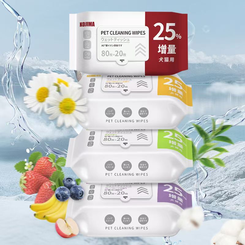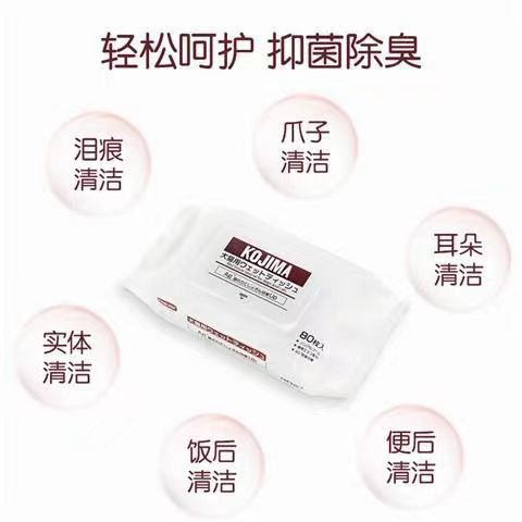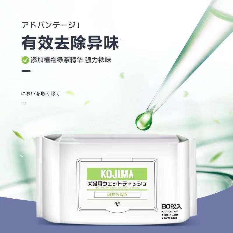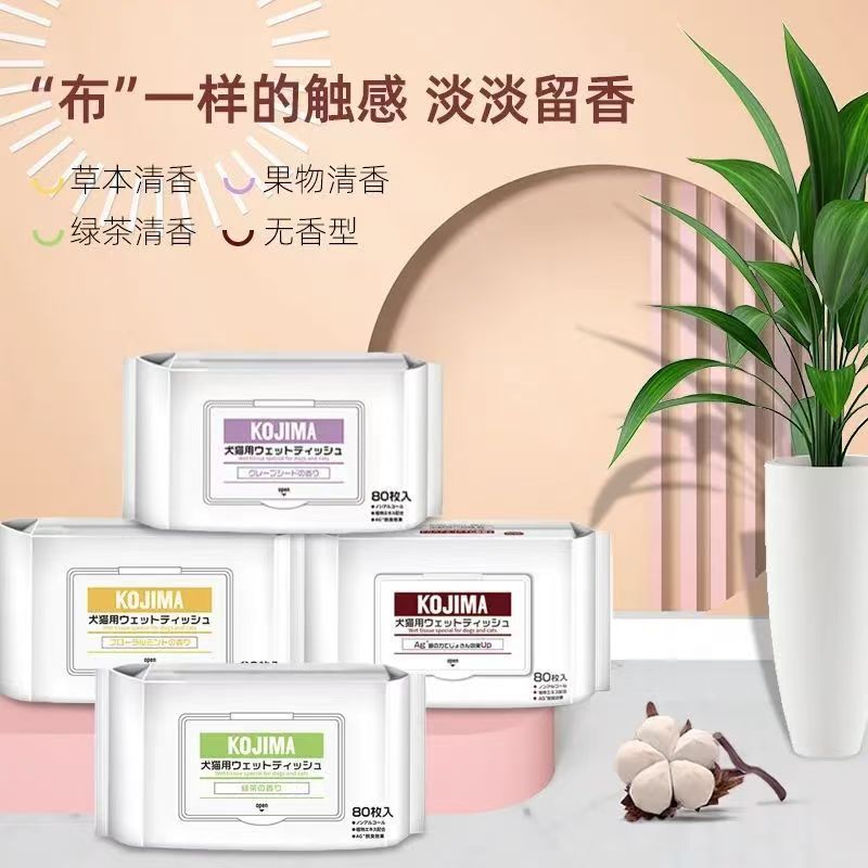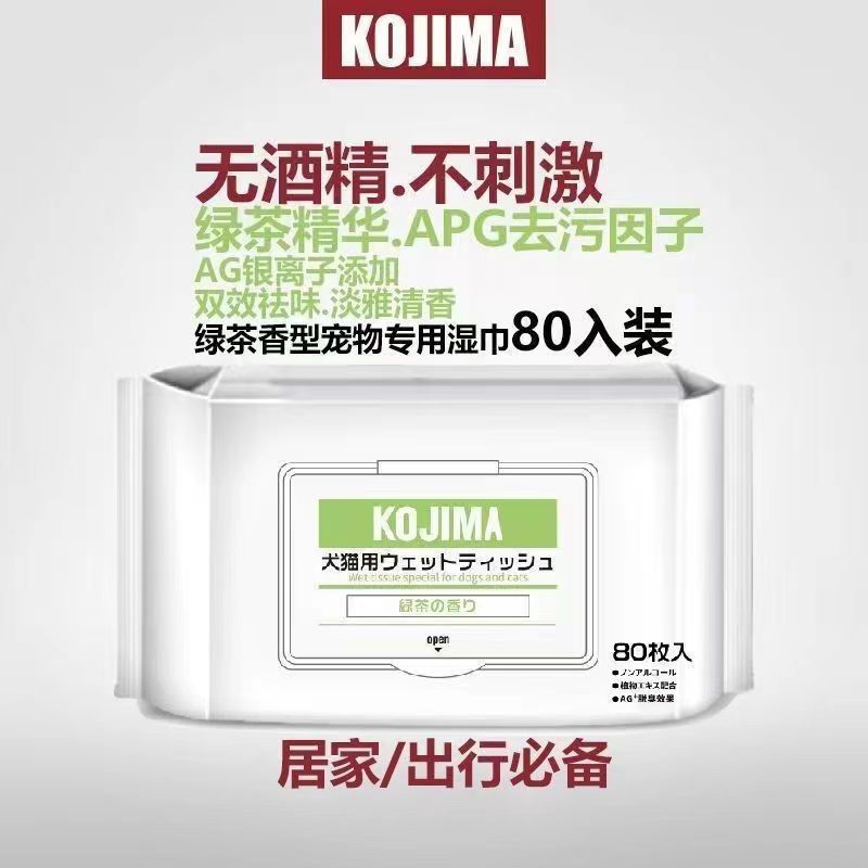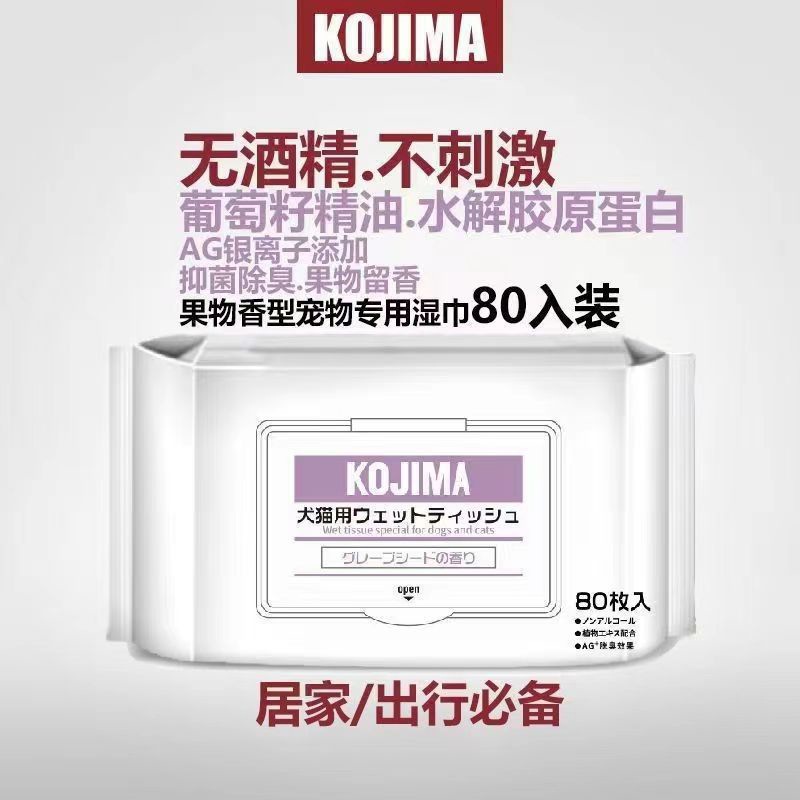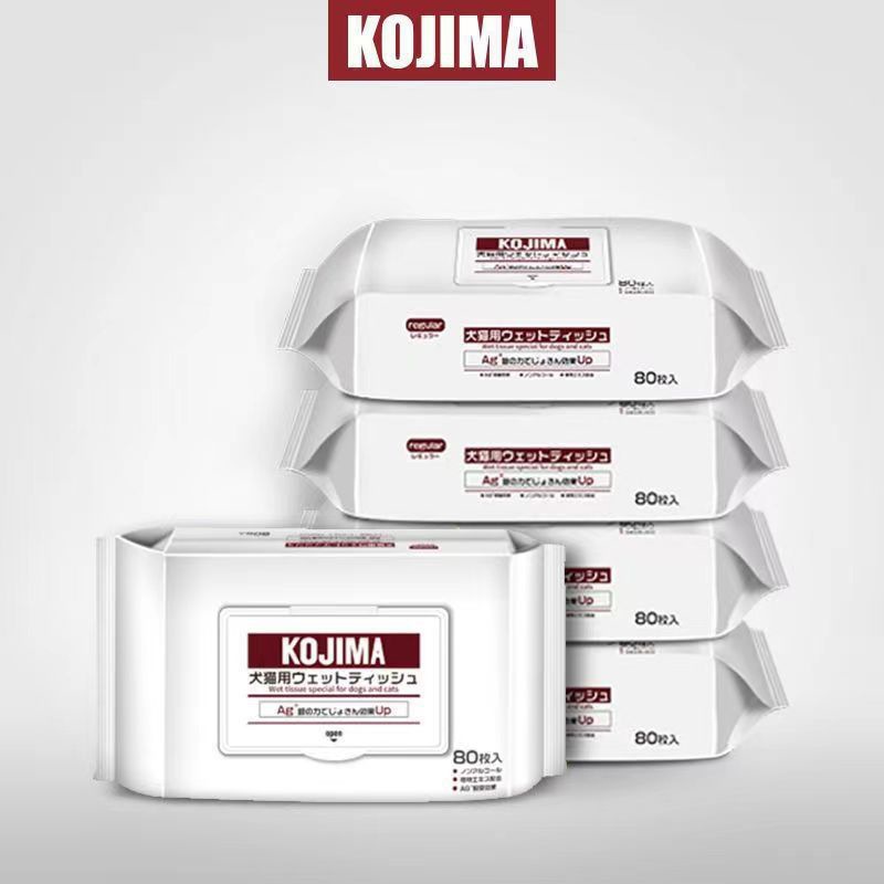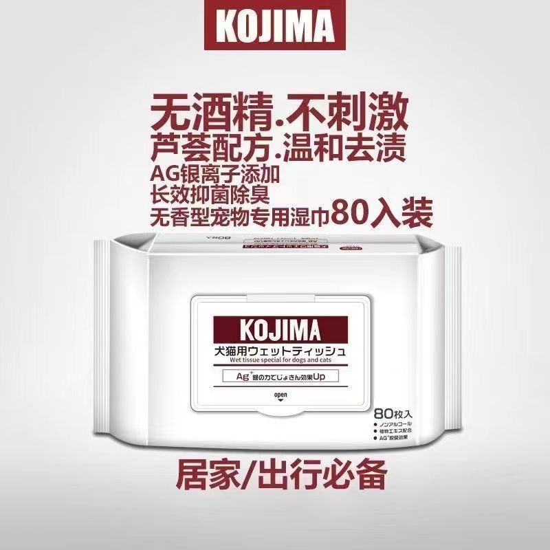 코지마 신제품 애완동물 물티슈, 고양이 및 강아지 물티슈, 만능 눈물자국 제거 물티슈, 80매 애완동물 청소용품
