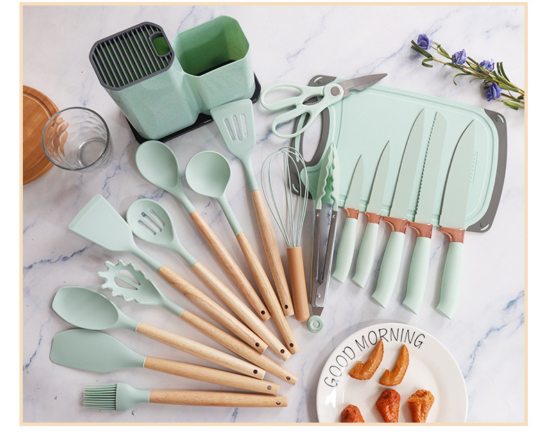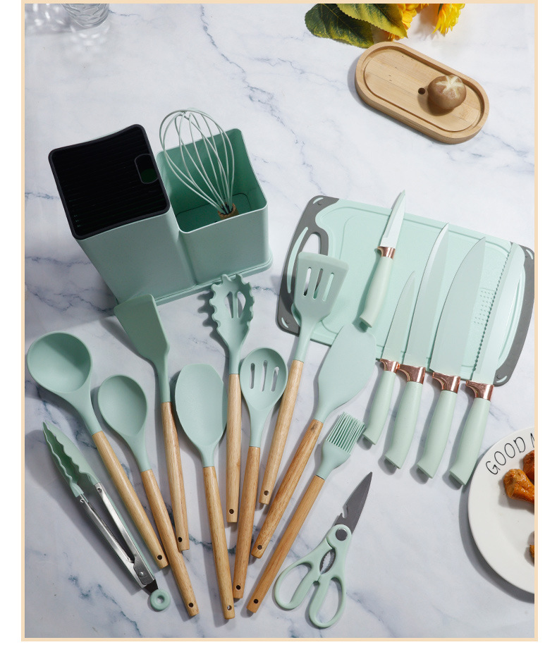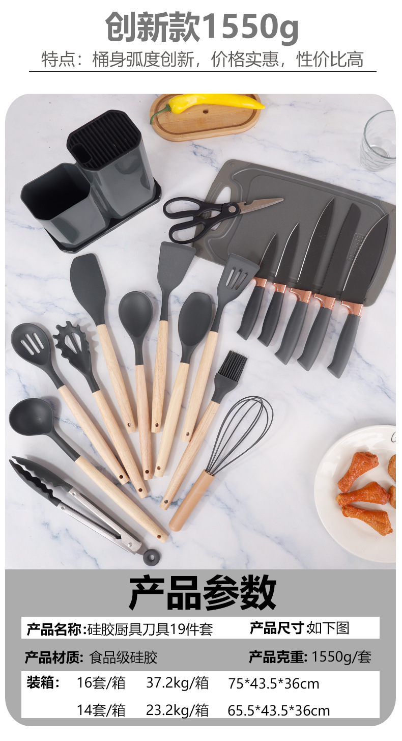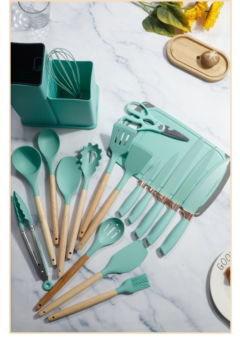 실리콘 주걱 수프 스푼 19 조각 세트 비 스틱 실리콘 주걱 가정용 실리콘 주방 용품 커터 세트 도매