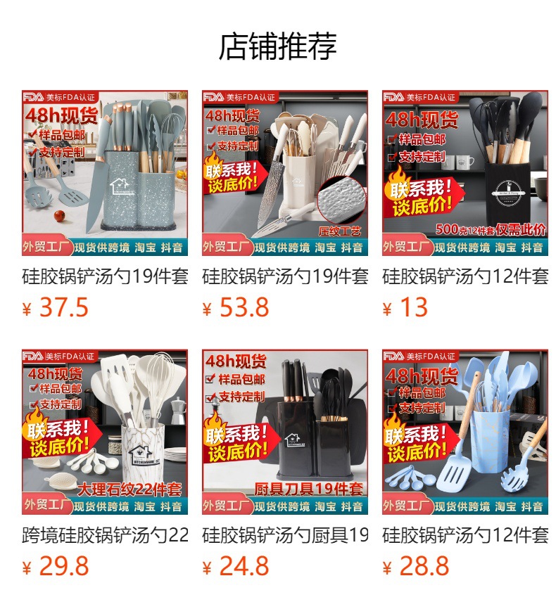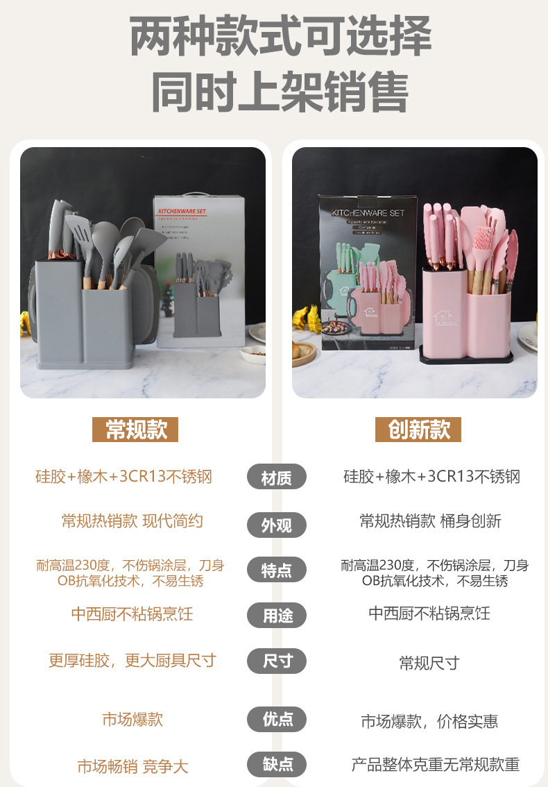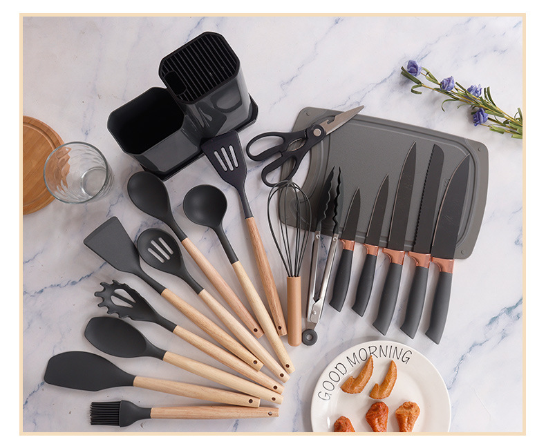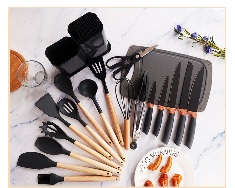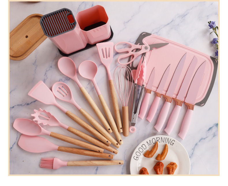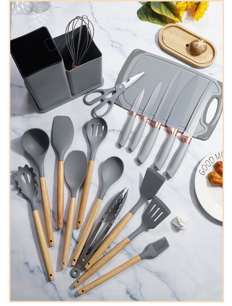 실리콘 주걱 수프 스푼 19 조각 세트 비 스틱 실리콘 주걱 가정용 실리콘 주방 용품 커터 세트 도매