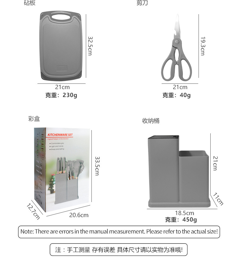혁신적인 주방용품과 칼 19종 세트 1550g(사각형 이중통)