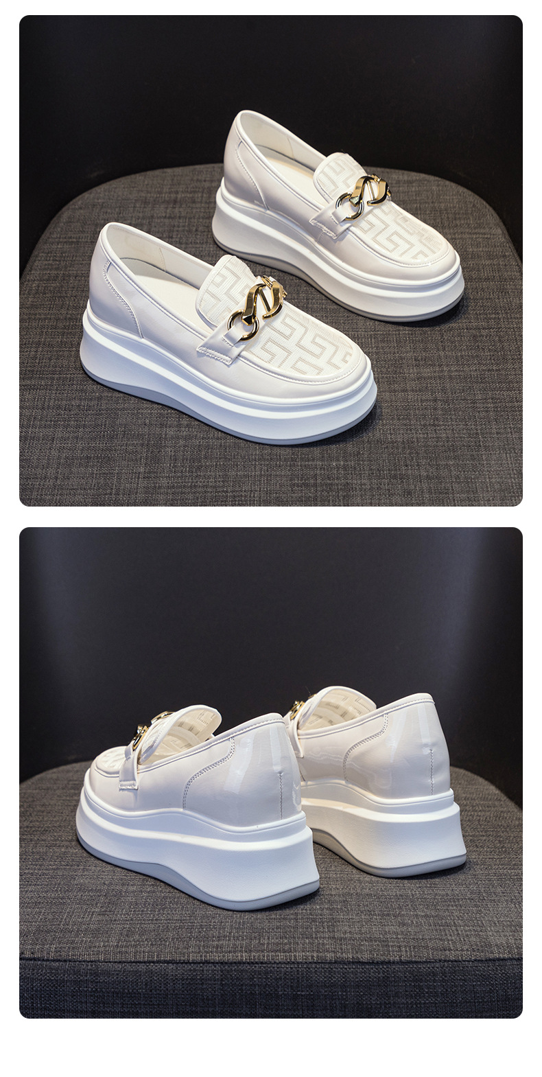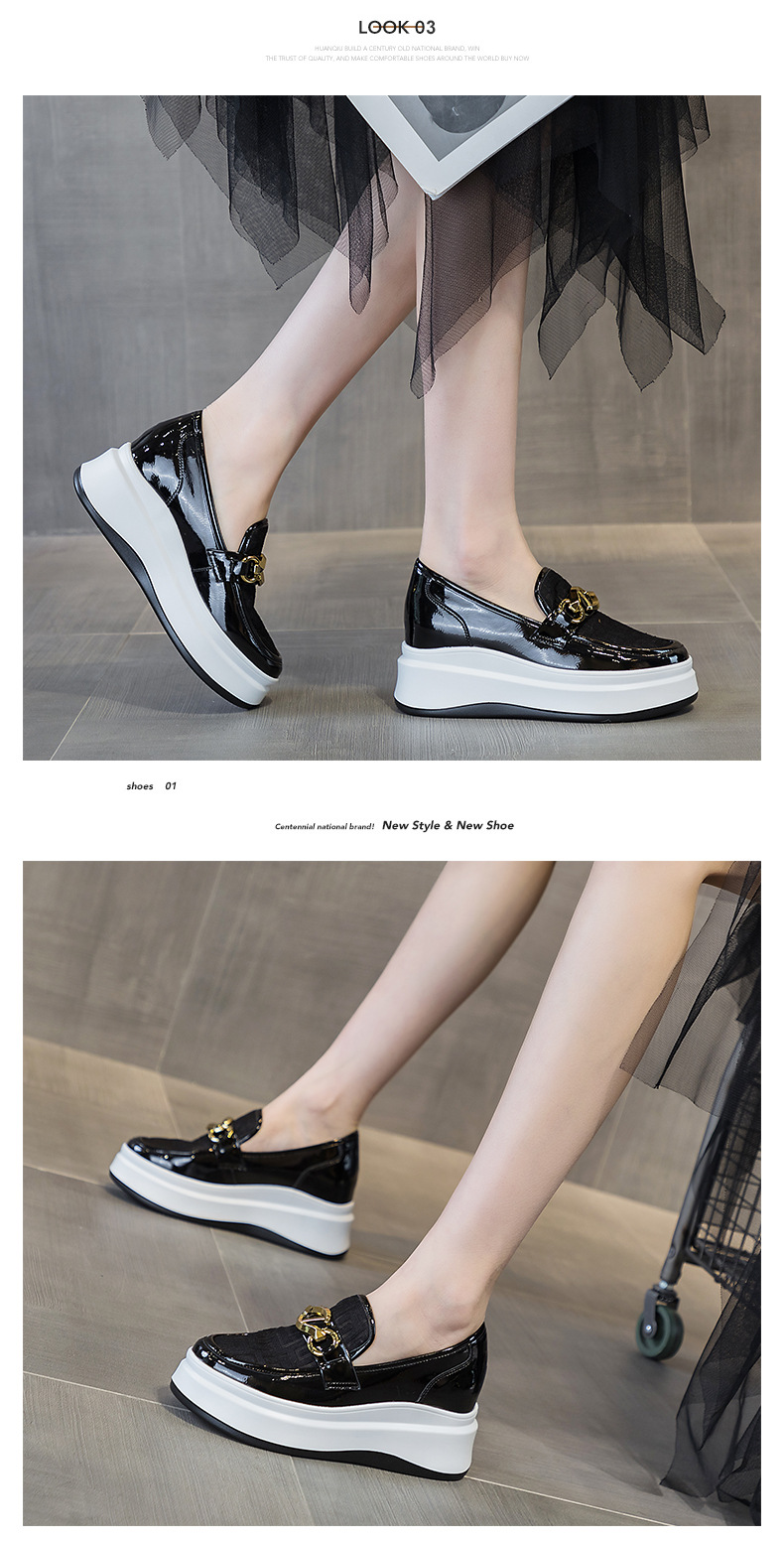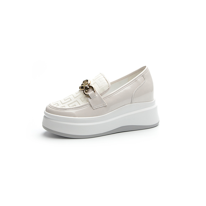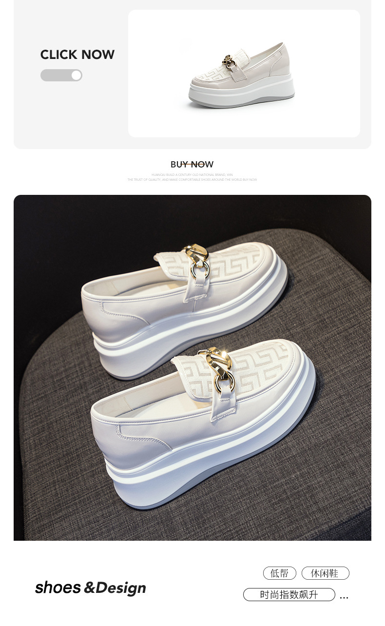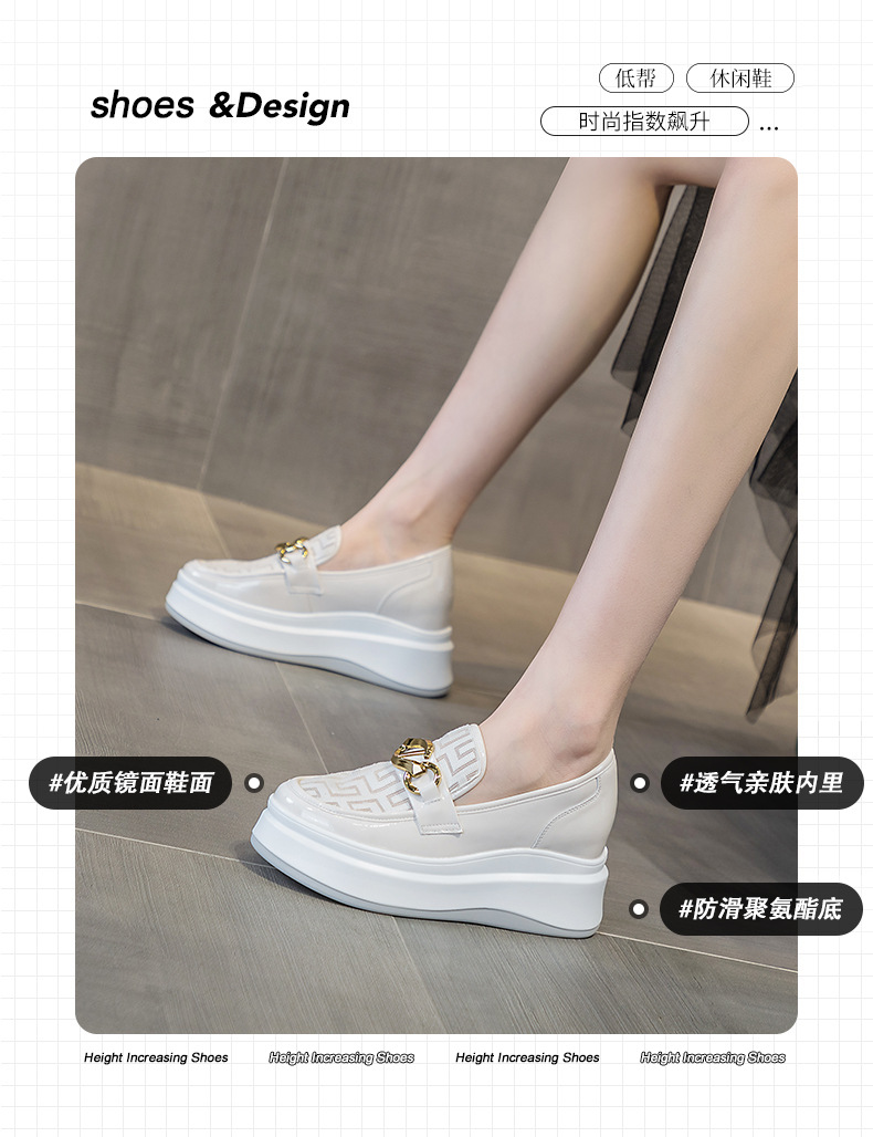 2025년 재고 여성 신발 봄 여름 플랫폼 두꺼운 밑창 키높이 메쉬 통기성 슬립온 화이트 로퍼 하이힐