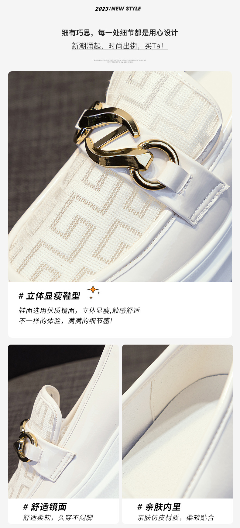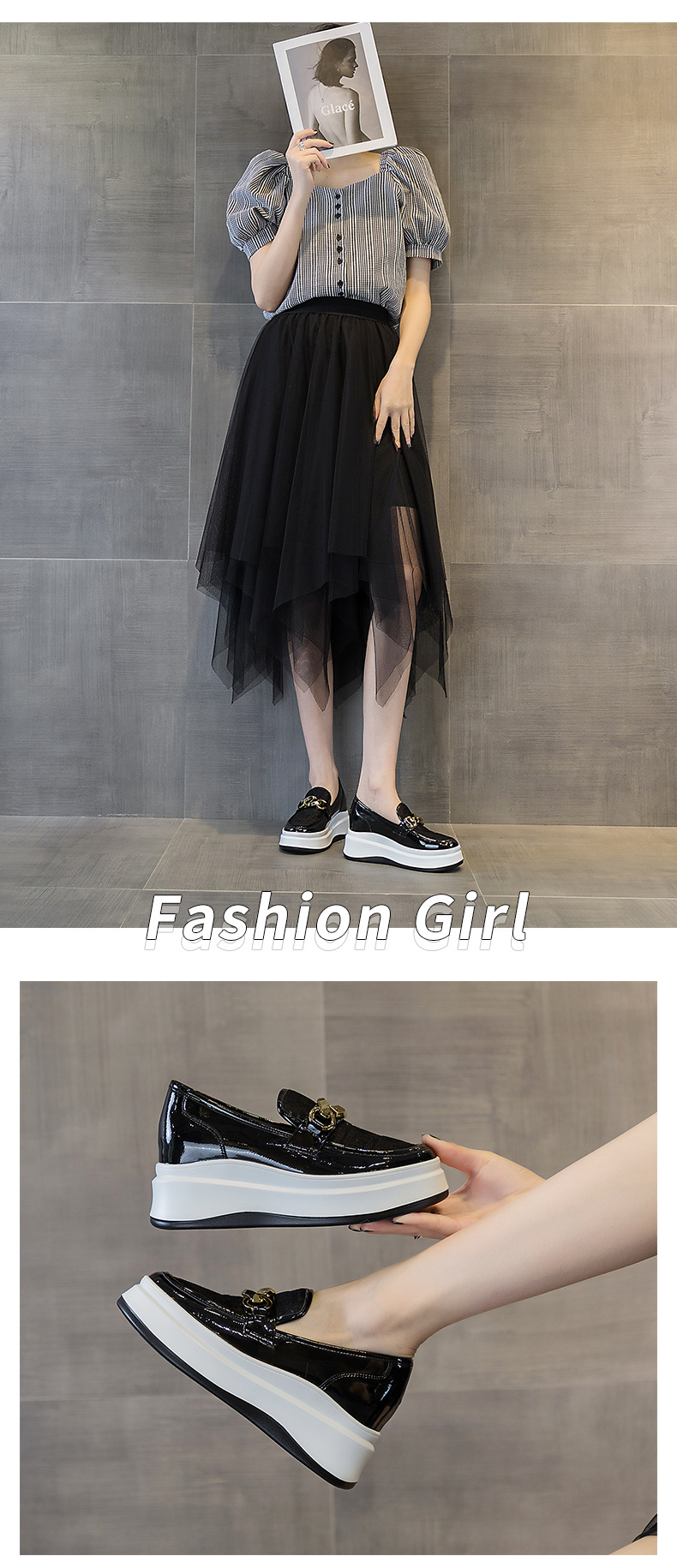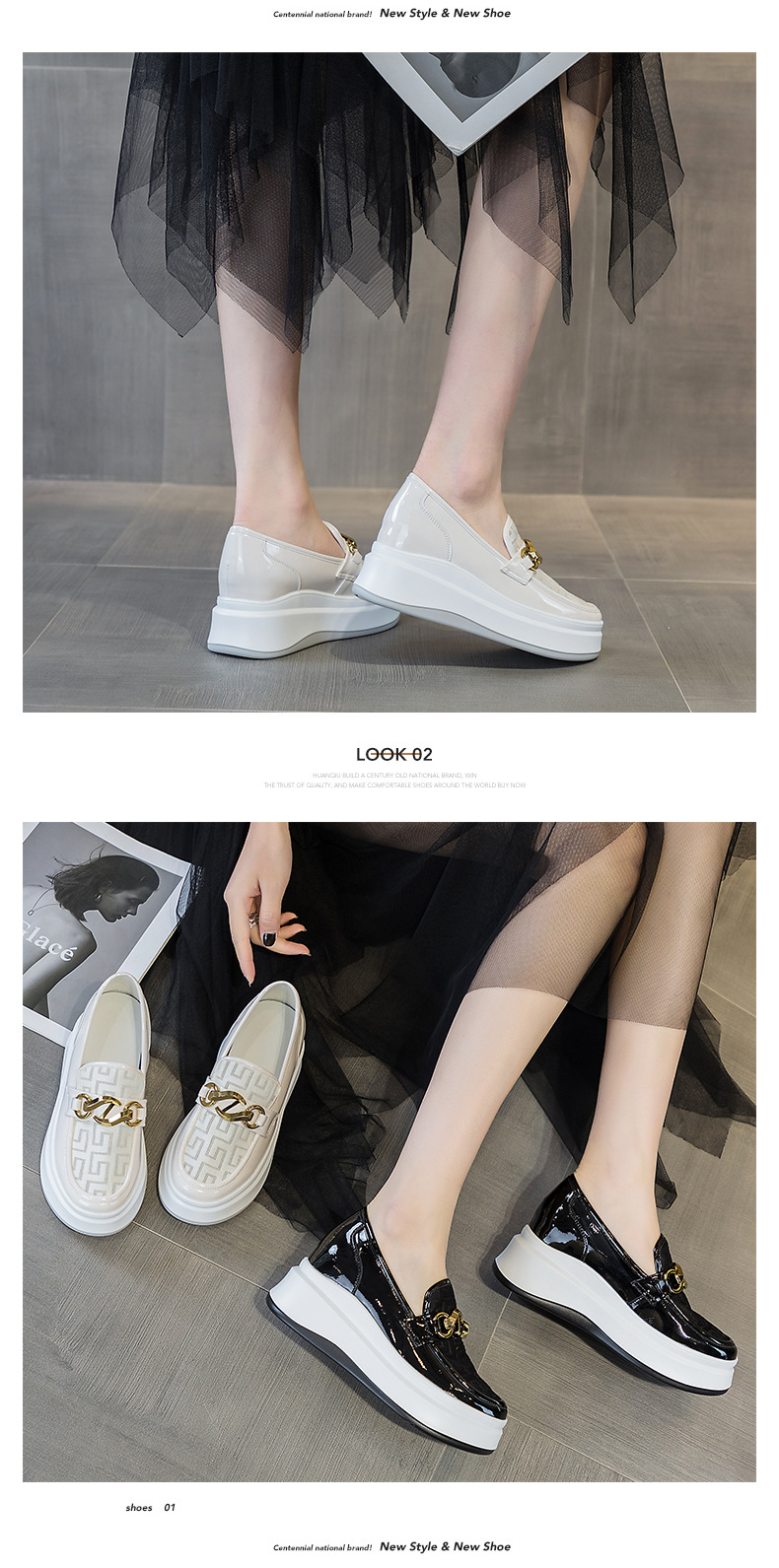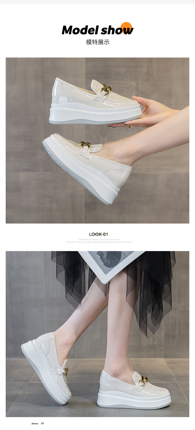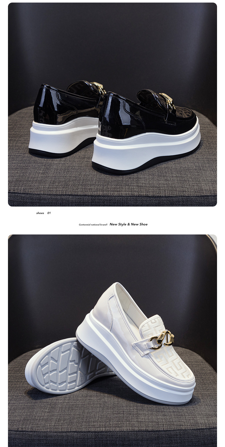 2025년 재고 여성 신발 봄 여름 플랫폼 두꺼운 밑창 키높이 메쉬 통기성 슬립온 화이트 로퍼 하이힐