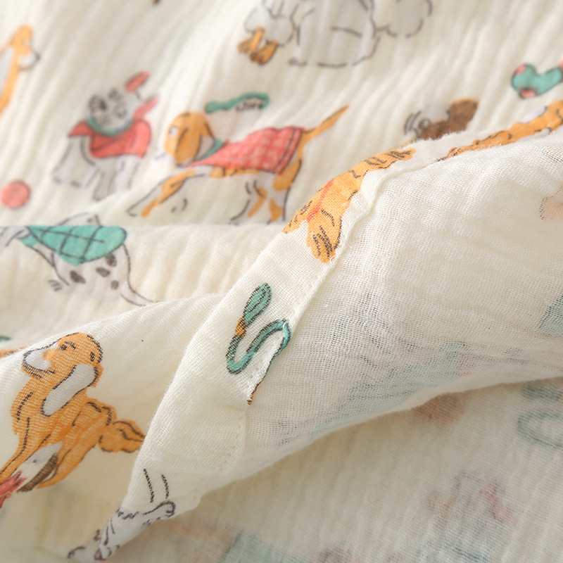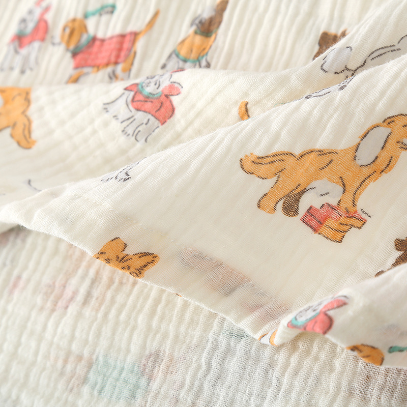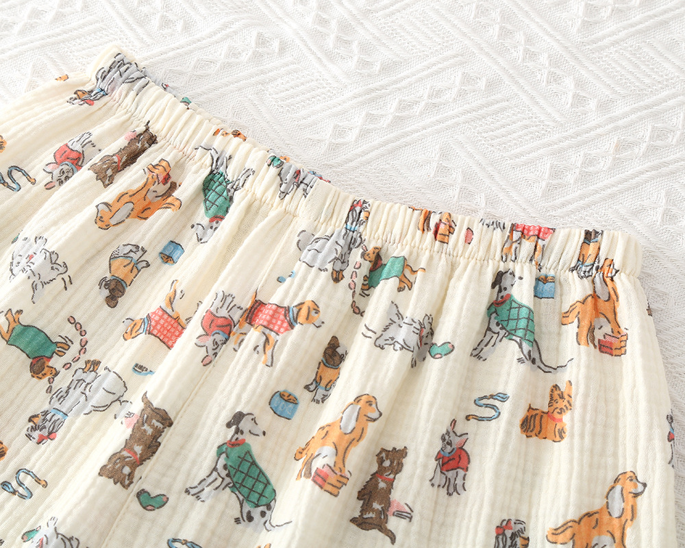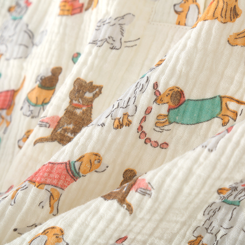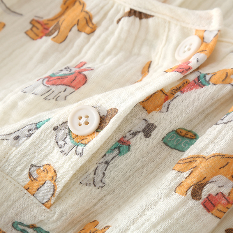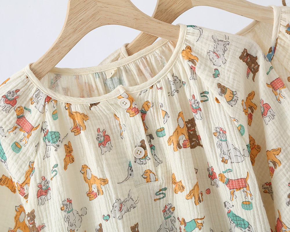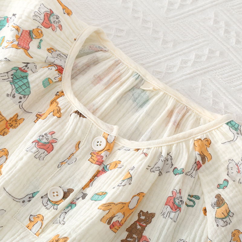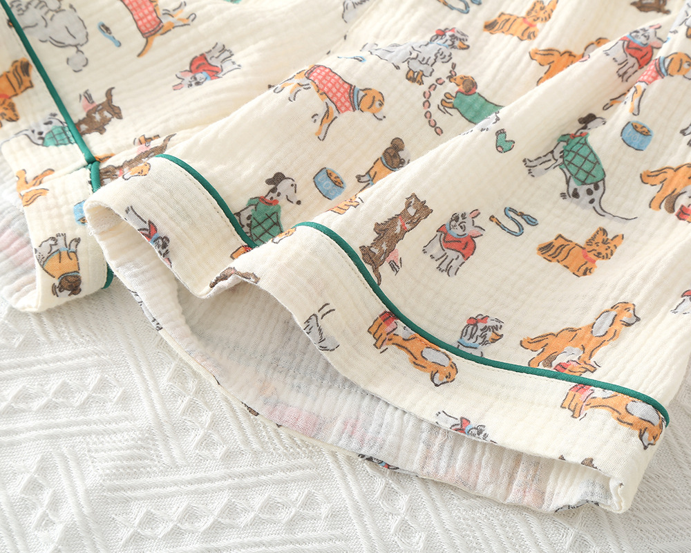 풀오버 잠옷 여자의 봄과 여름 면 크레이프 반팔 반바지 세트 한국 스타일 여자의 여름 더블 레이어 거즈 가정 옷