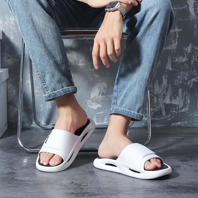 슬리퍼 남성용 여름 겉옷 두꺼운 밑창 홈 실내 미끄럼 방지 욕실 목욕 느낌 조용한 가정용 남성용 샌들