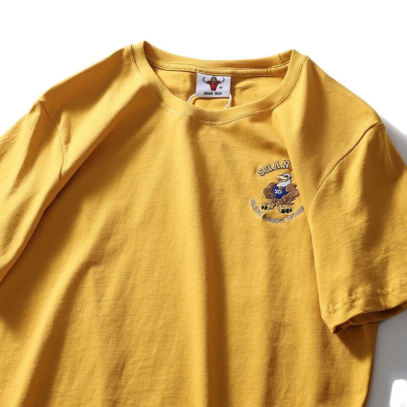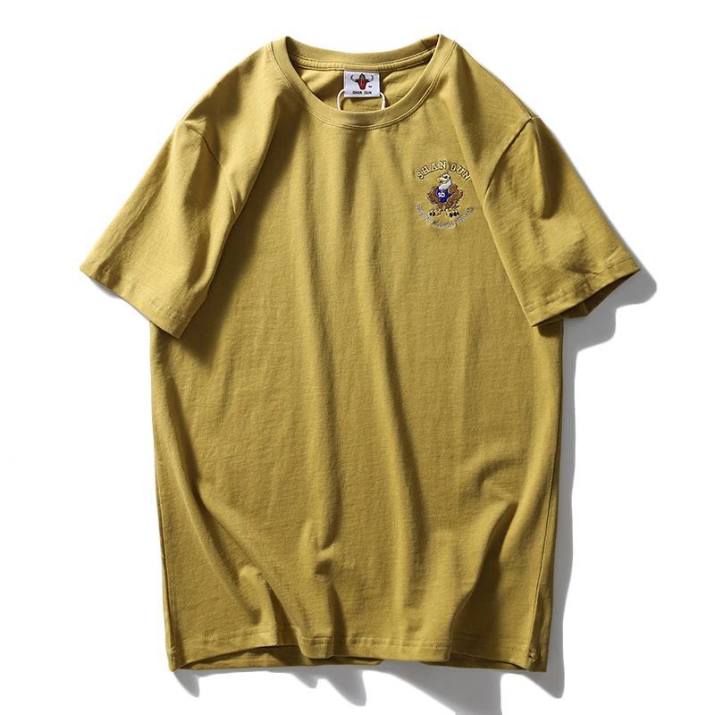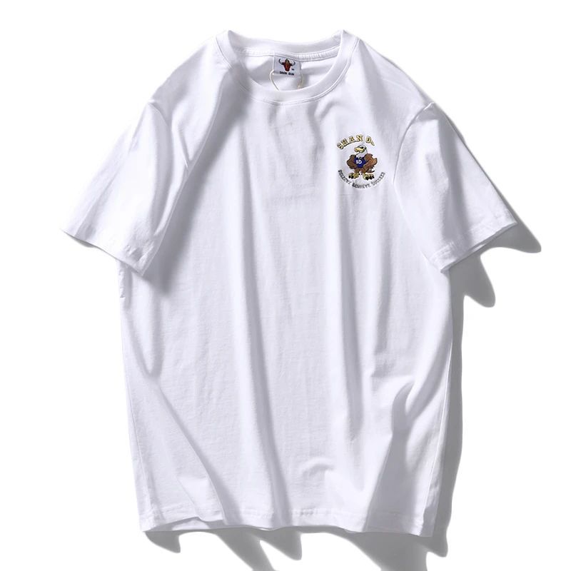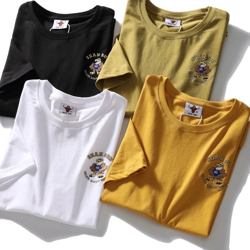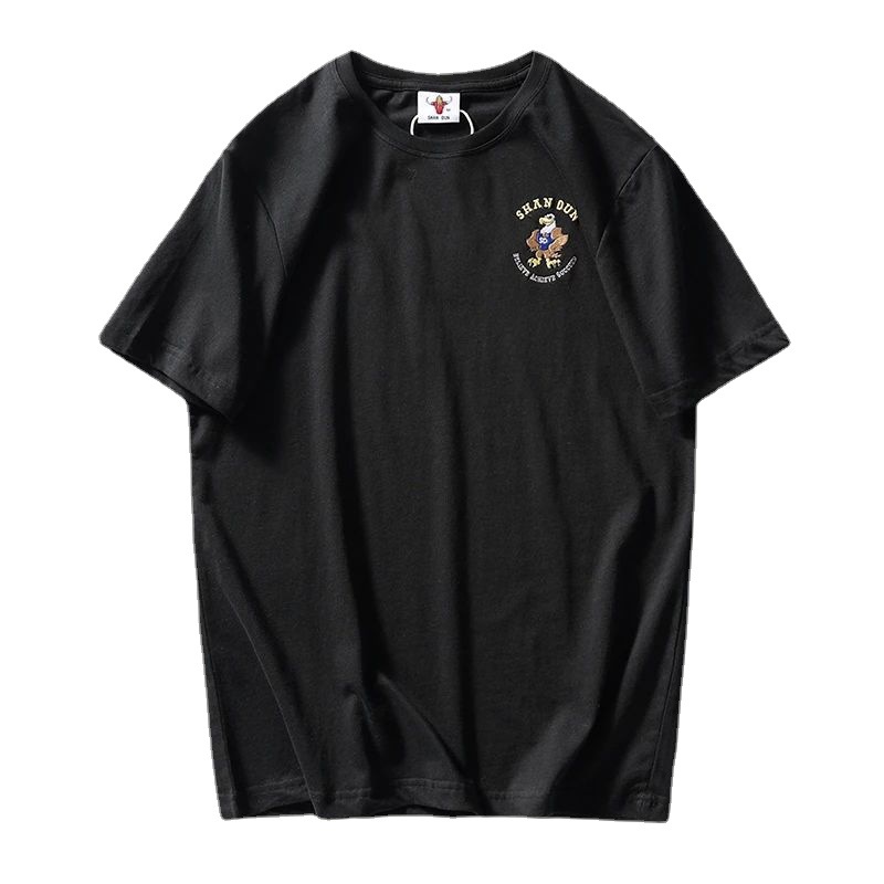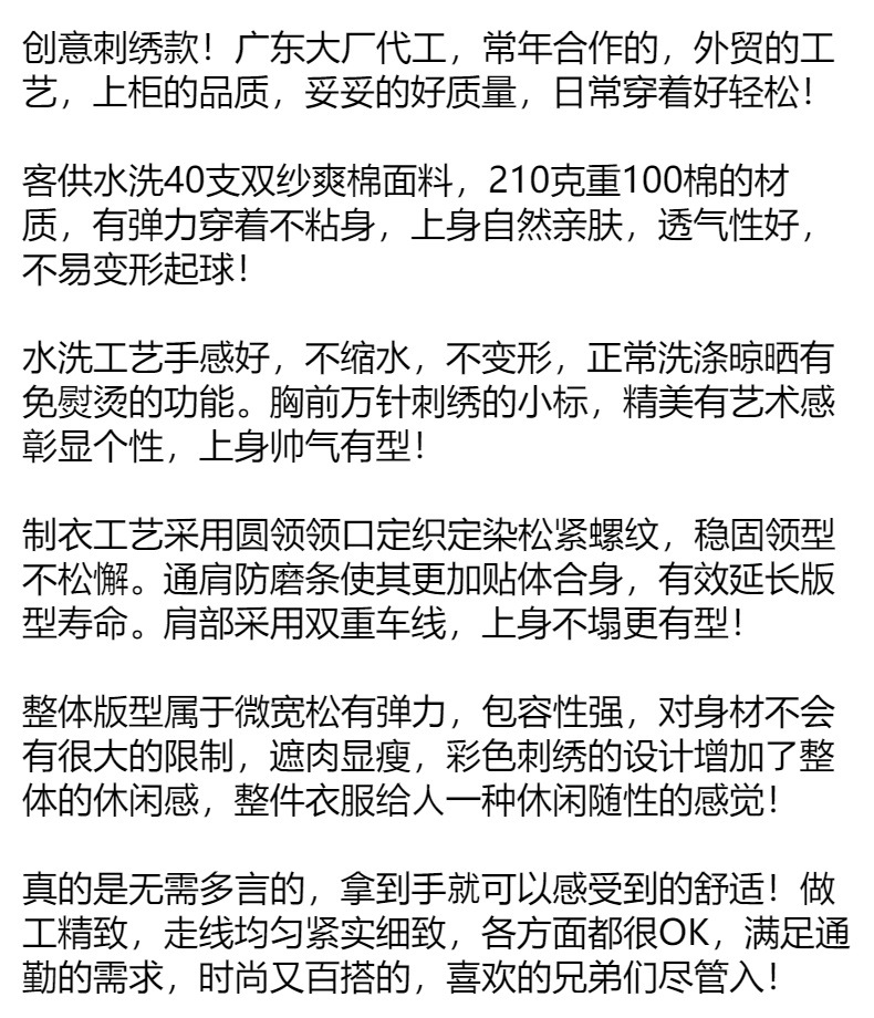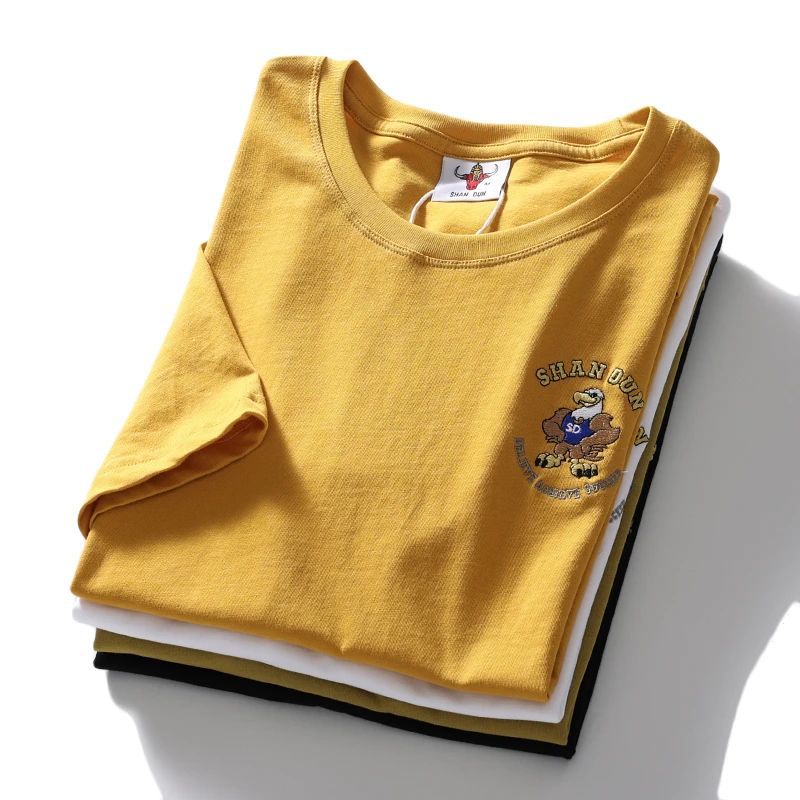 편안하고 좋은 착용 40 더블 원사 쿨면 210g 무거운 자수 남성 캐주얼 스트레치 바닥 반팔 티셔츠 남성 의류
