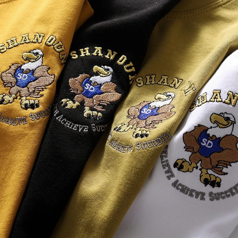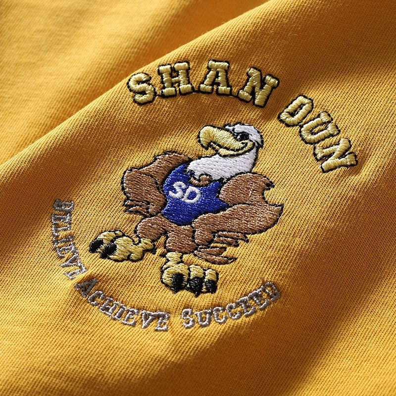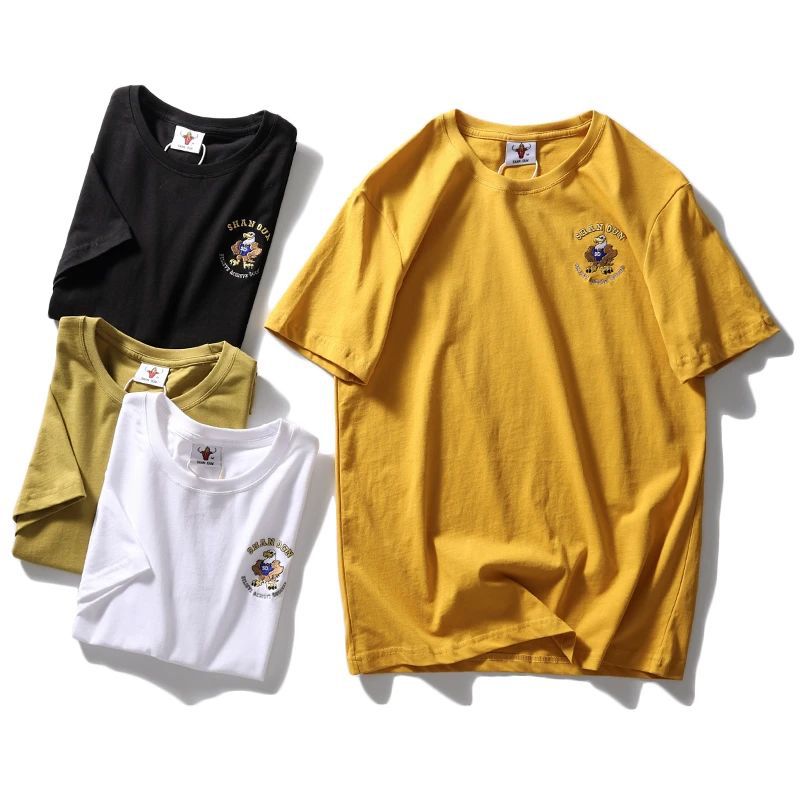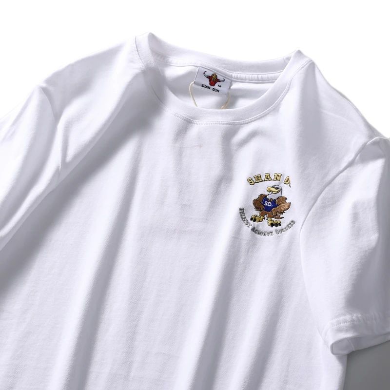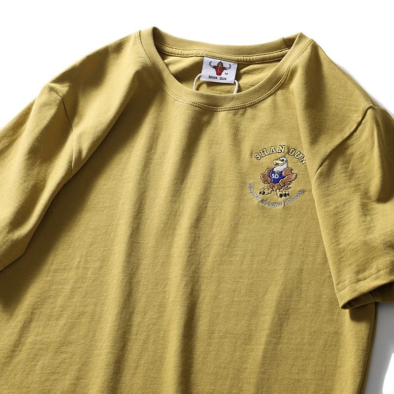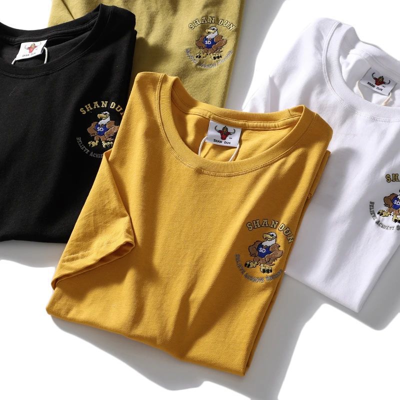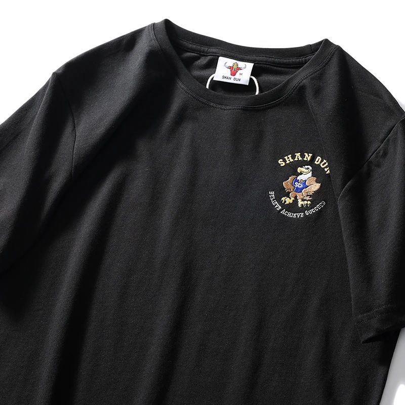 편안하고 좋은 착용 40 더블 원사 쿨면 210g 무거운 자수 남성 캐주얼 스트레치 바닥 반팔 티셔츠 남성 의류