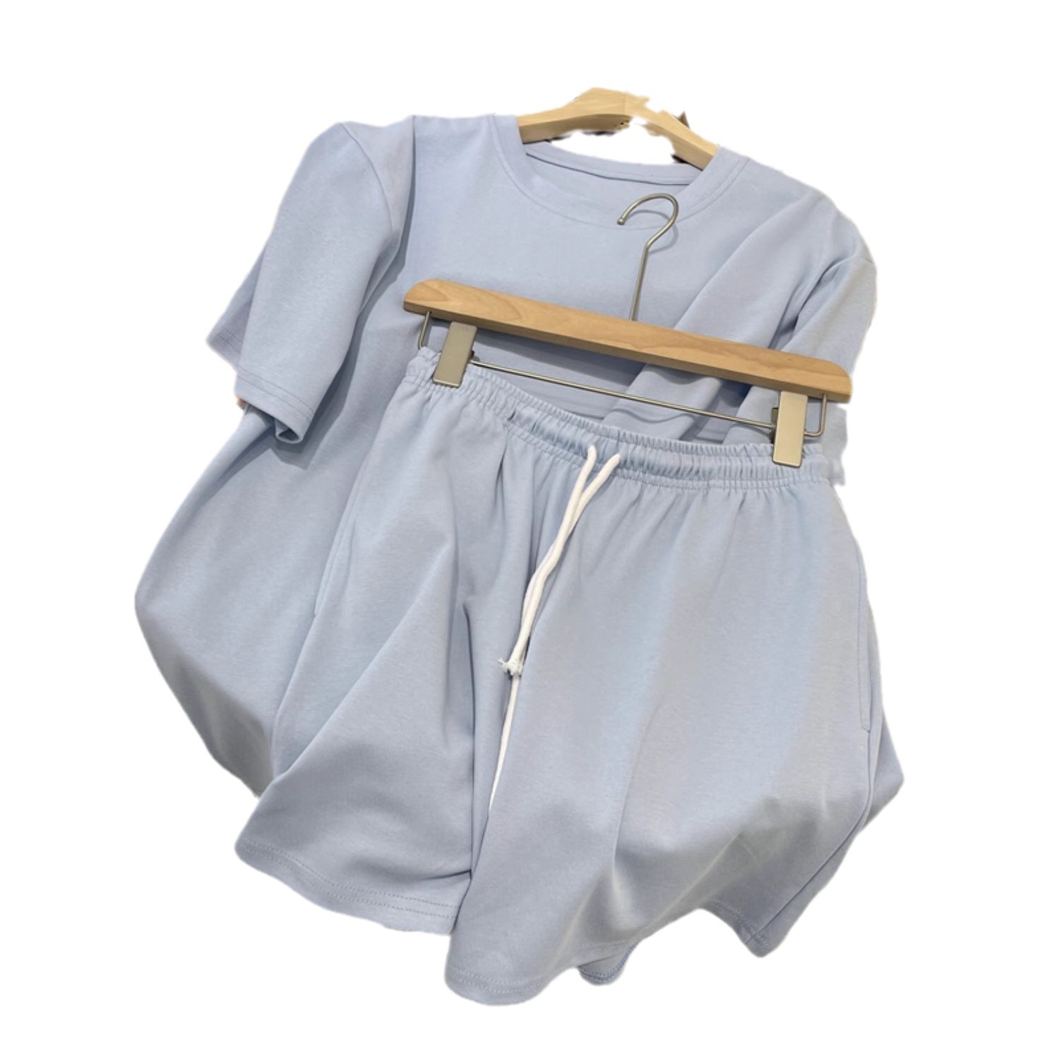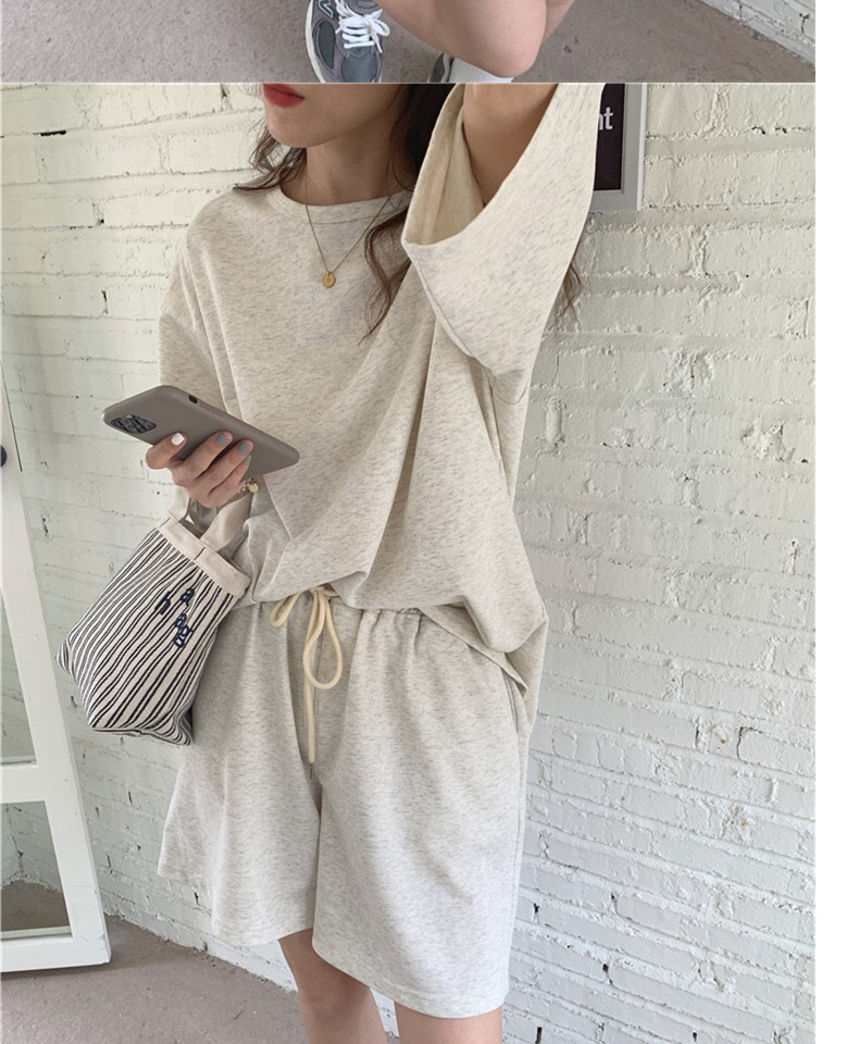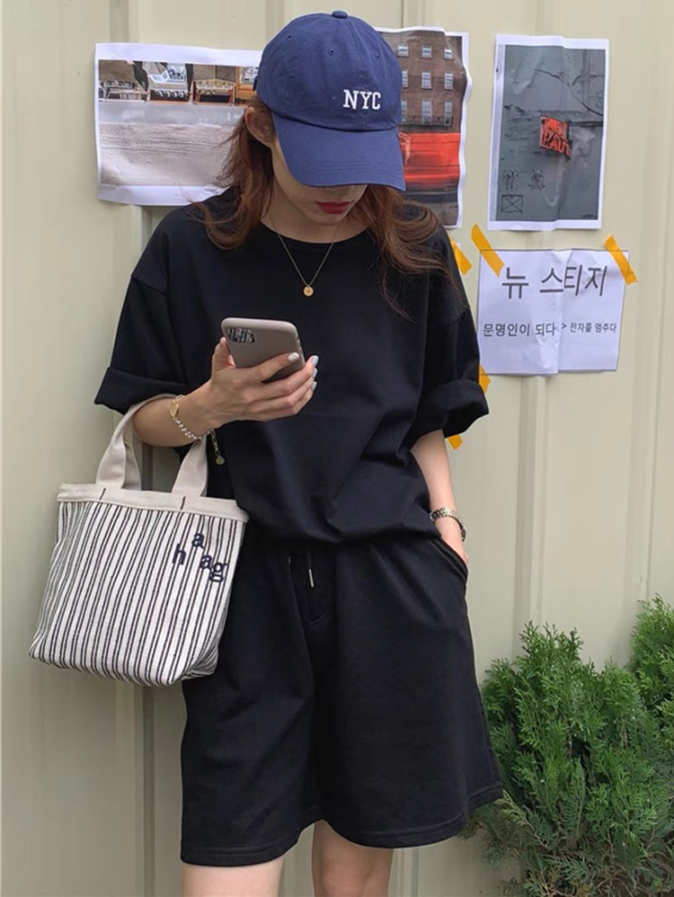 여성용 런닝 캐주얼 운동복 세트 2026 여름 신상품 대형 여성복 한국 스타일 반팔 반바지 투피스 세트 트렌디