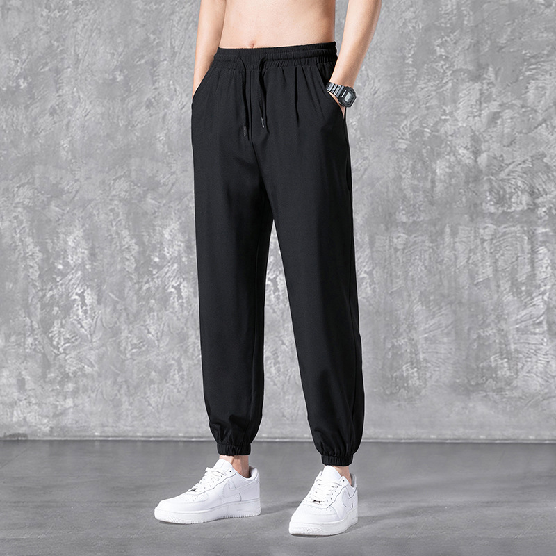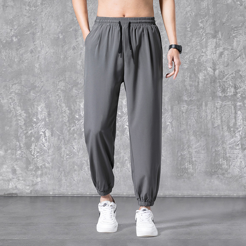 아이스 실크 바지 남성 여름 루즈한 스포츠 바지 가벼운 에어컨 바지 솔리드 컬러 레깅스 심플 9부 바지 캐주얼 바지