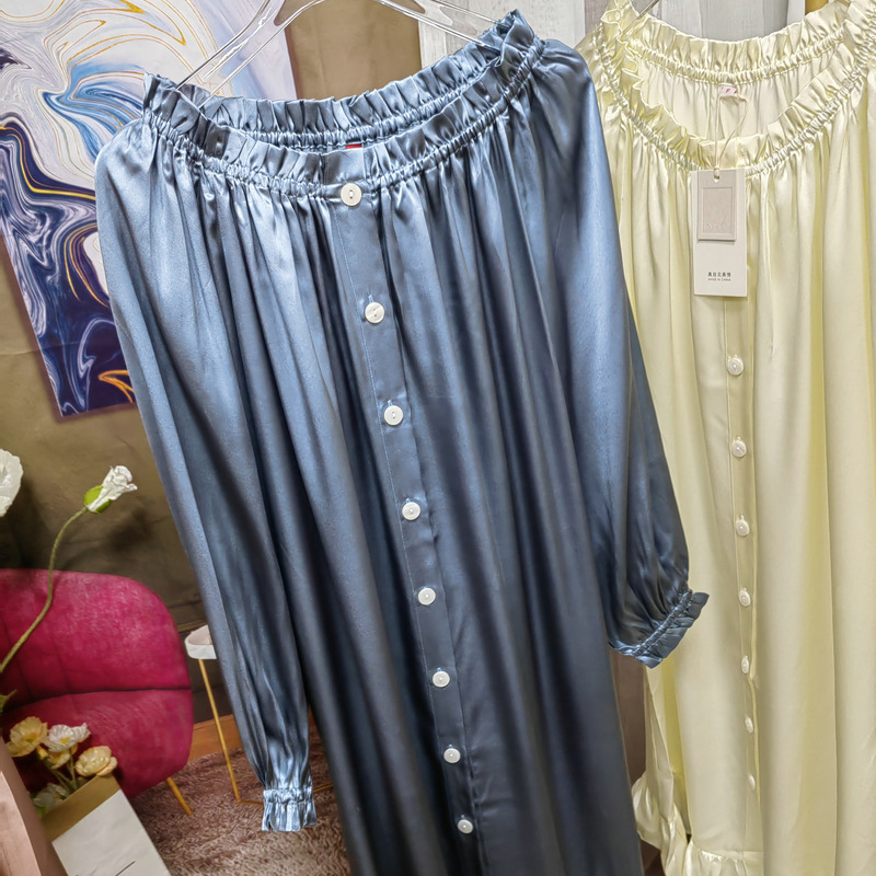 Meitian 플러스 사이즈 느슨한 지방 MM2023 새로운 실크 잠옷 100 뽕나무 실크 원피스 가정 원피스 년 원피스