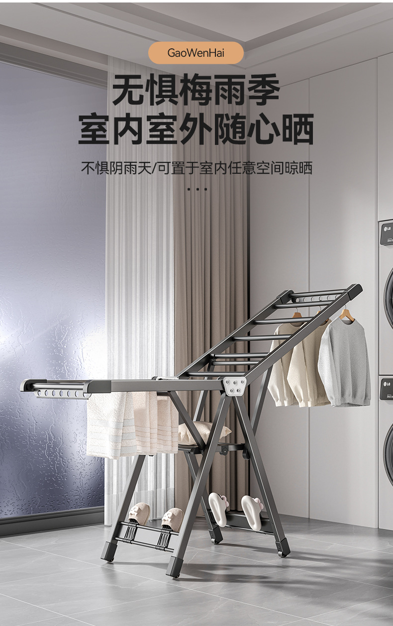 업그레이드 1.8m - 건그레이 - 방풍 스트립 + 신발 건조대 + 통합 도르래 [넓고 두꺼운 사각형 튜브] - 항공 등급 알루미늄 합금