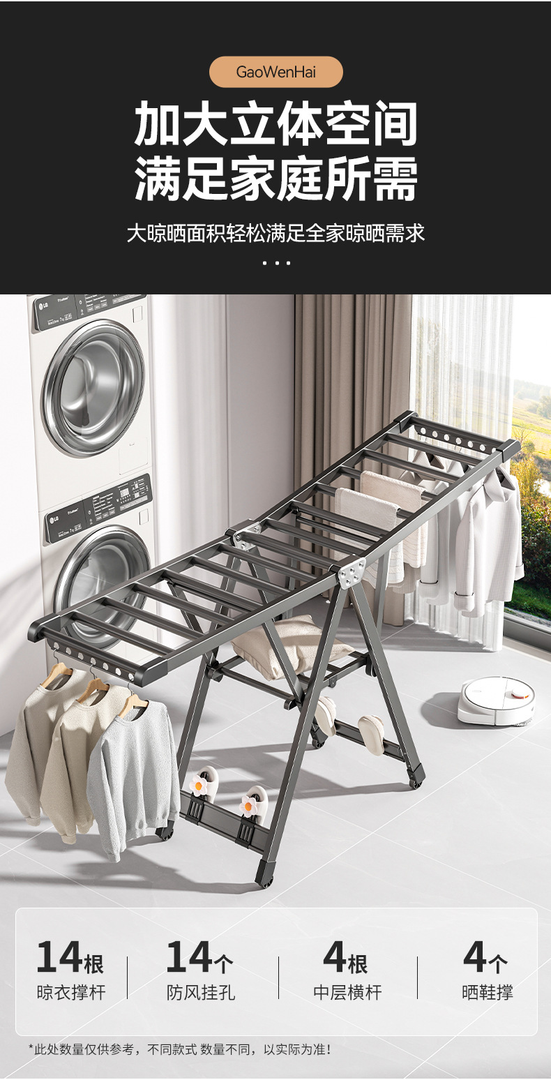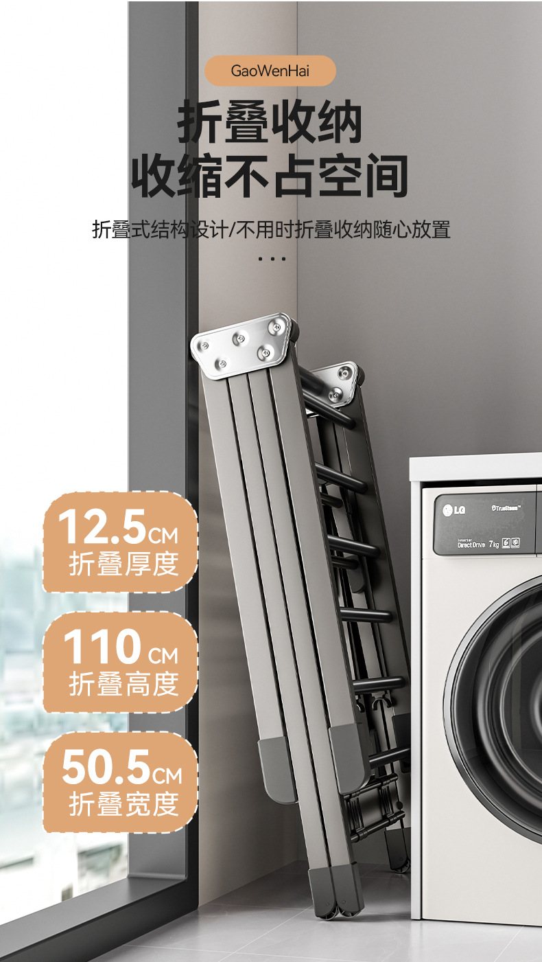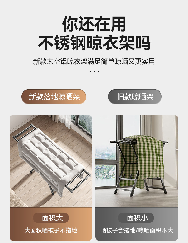 가정용 발코니 빨래 건조대, 바닥에서 설치가 필요 없는 접이식 빨래 건조대, 침실 두꺼운 빨래 건조대, 이동식