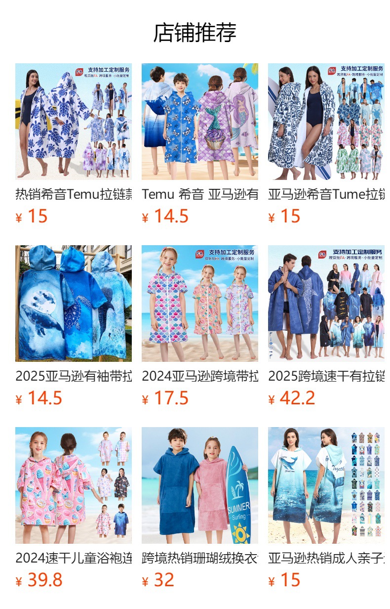 提示:本公司专业生产沙滩浴袍,版型新颖,海量花型
