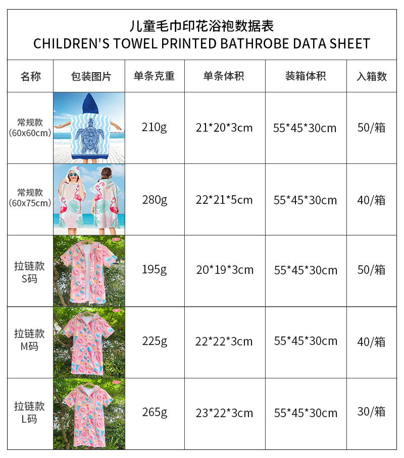 各种毛巾布浴袍产品参数如下: