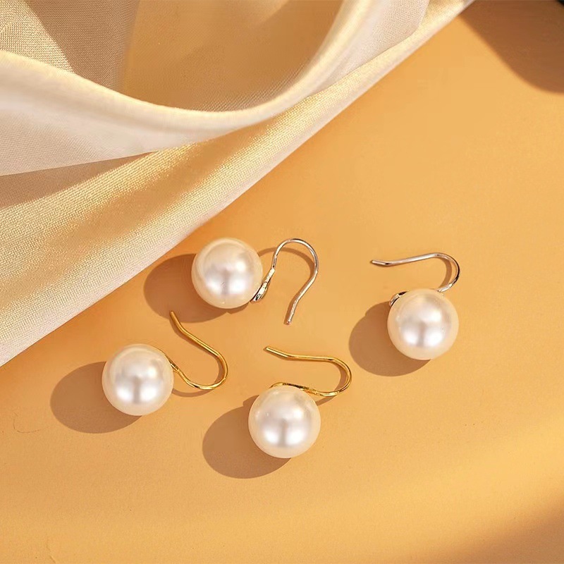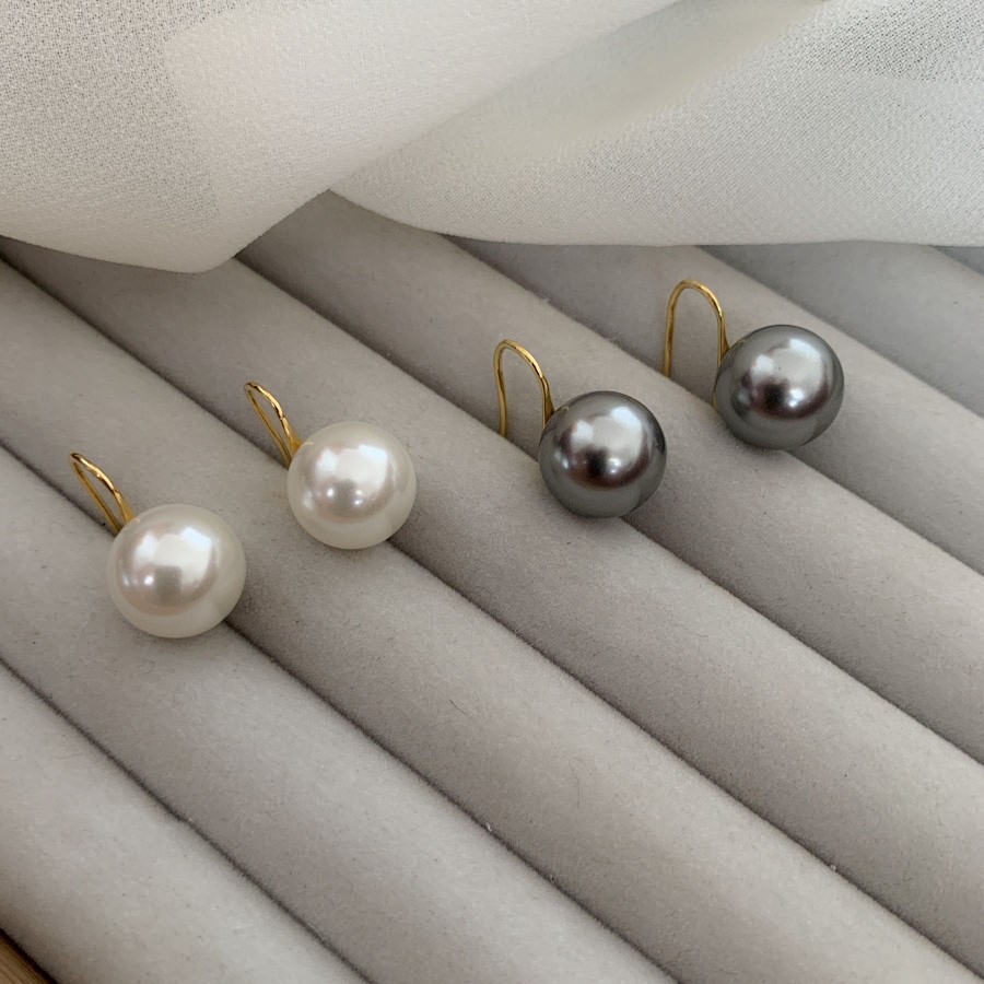 심플 레트로 실버 그레이 화이트 하이힐 귀걸이 여성용 오스트리아 Shijia 진주 925 실버 골드 도금 귀걸이 New