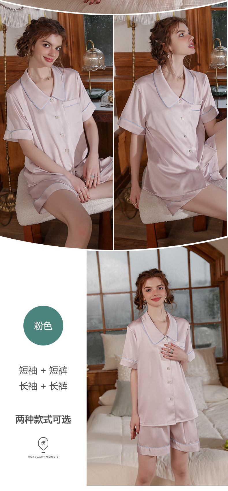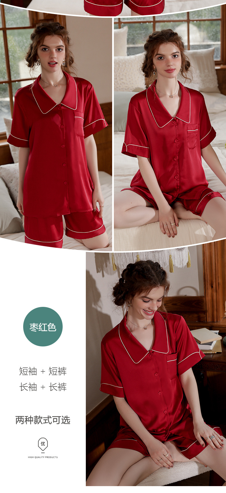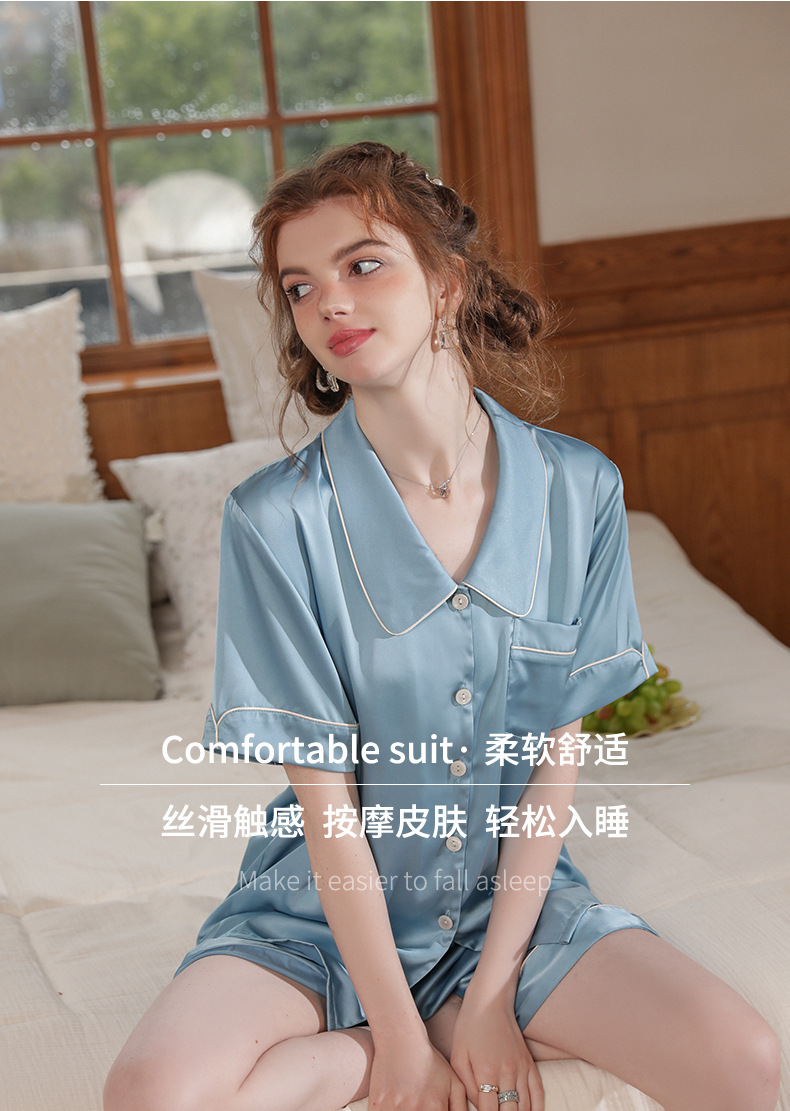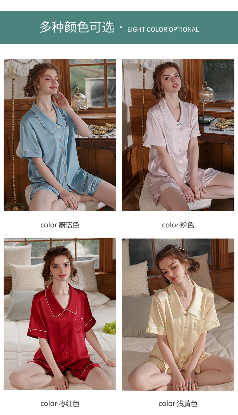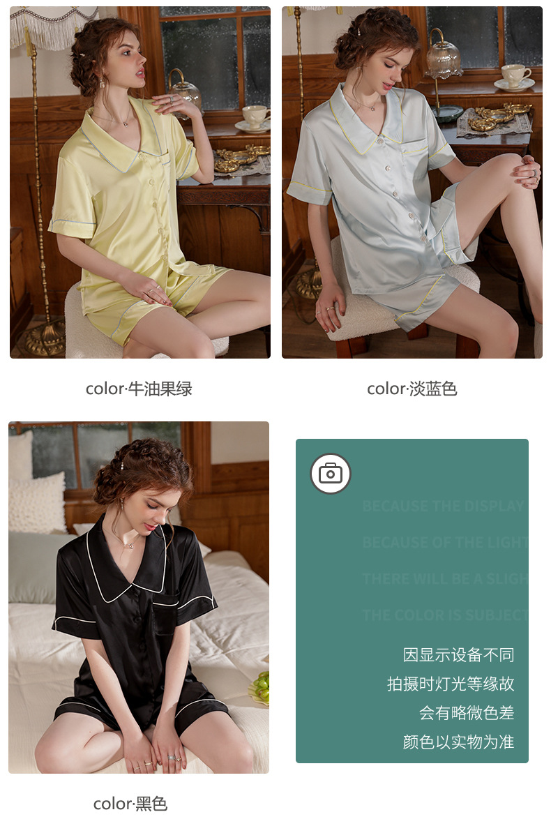 Mosogoy/꿈 실크 브로케이드 잠옷 여자의 2023 새로운 반팔 단색 옷깃 가정 의류 느슨한 플러스 사이즈 아이스 실크