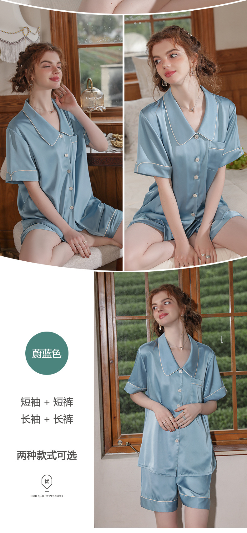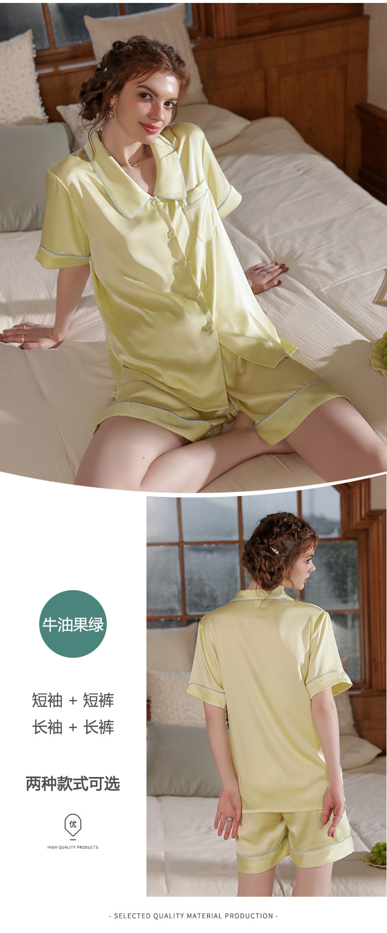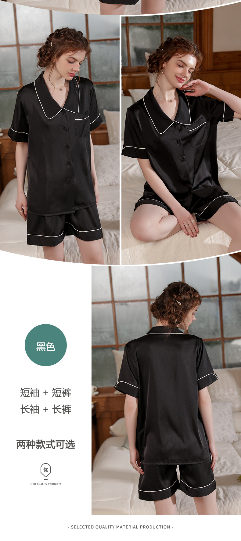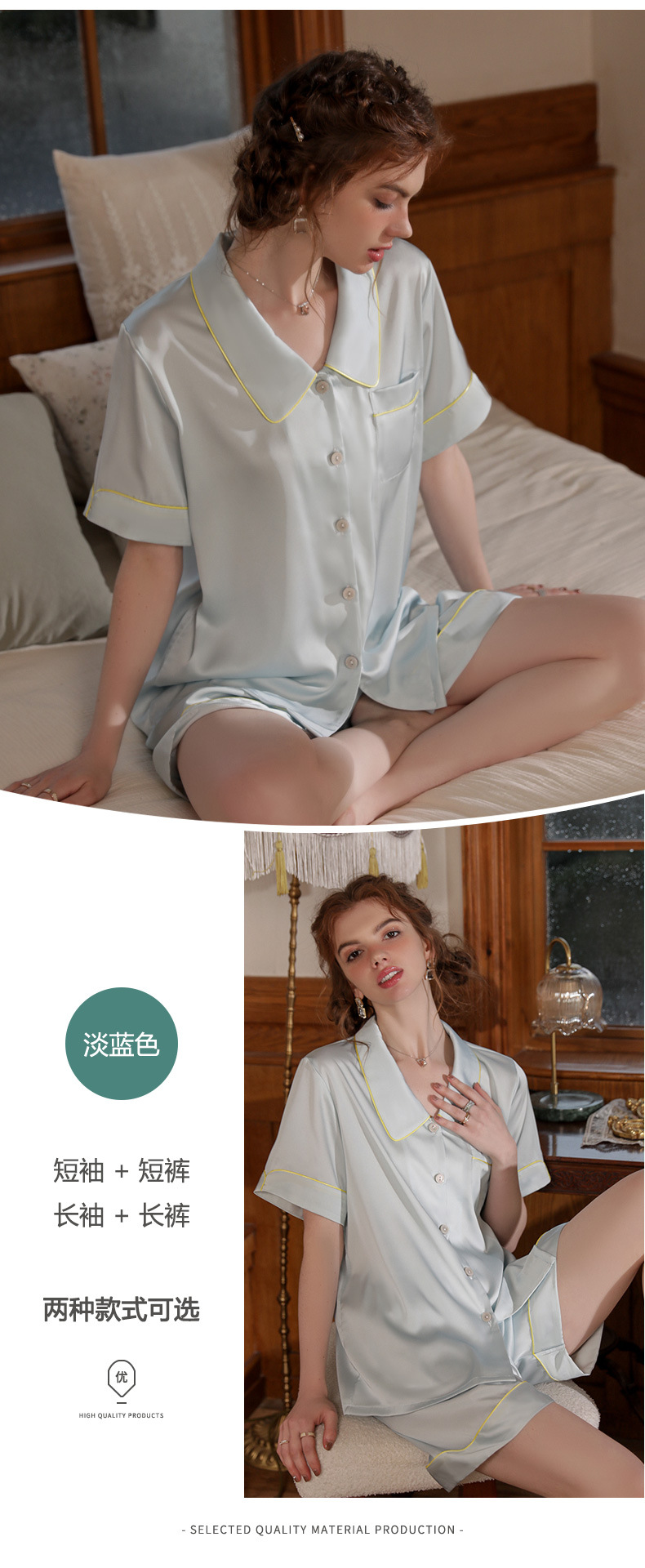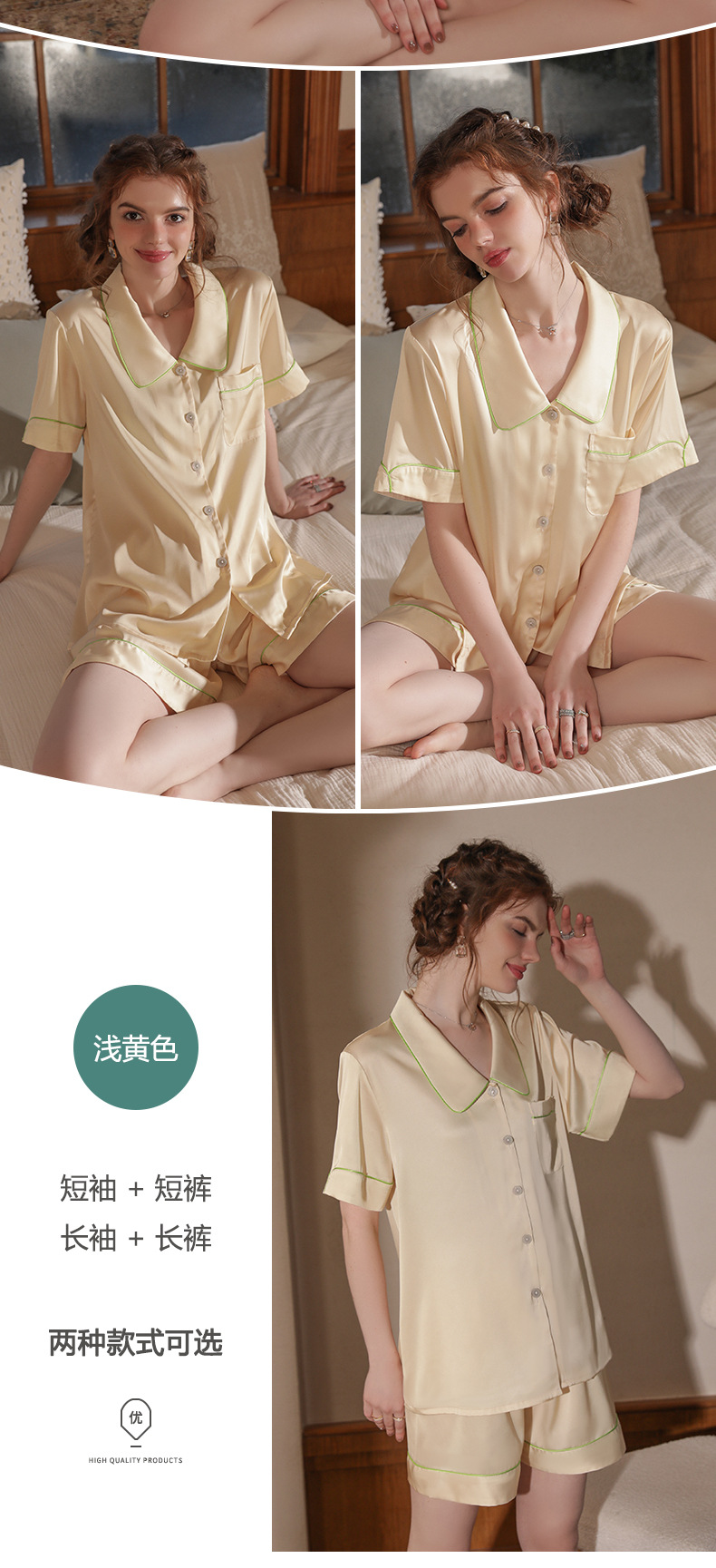 Mosogoy/꿈 실크 브로케이드 잠옷 여자의 2023 새로운 반팔 단색 옷깃 가정 의류 느슨한 플러스 사이즈 아이스 실크