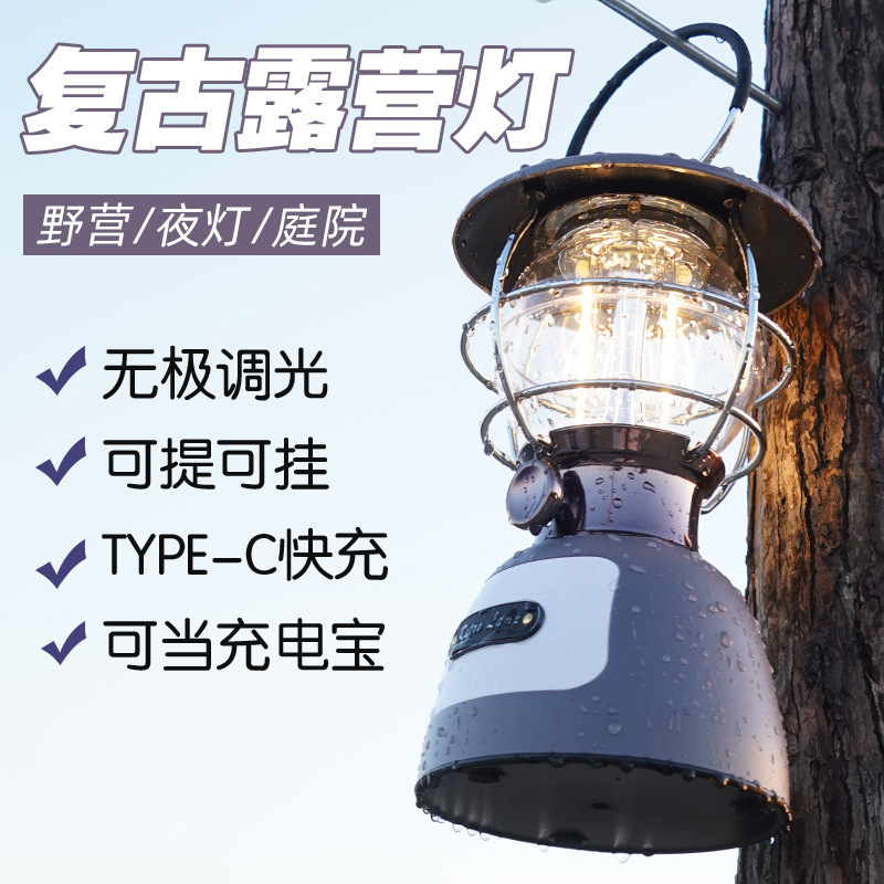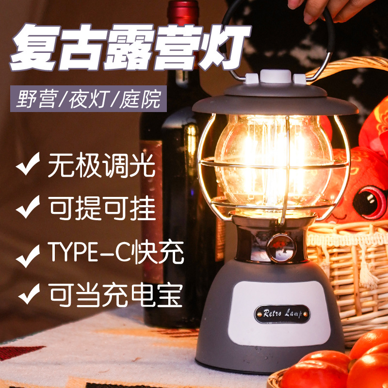 크로스보더 뉴 빈티지 캠핑 조명 다기능 캠핑 조명 야외 충전식 휴대용 랜턴 텐트 조명 도매