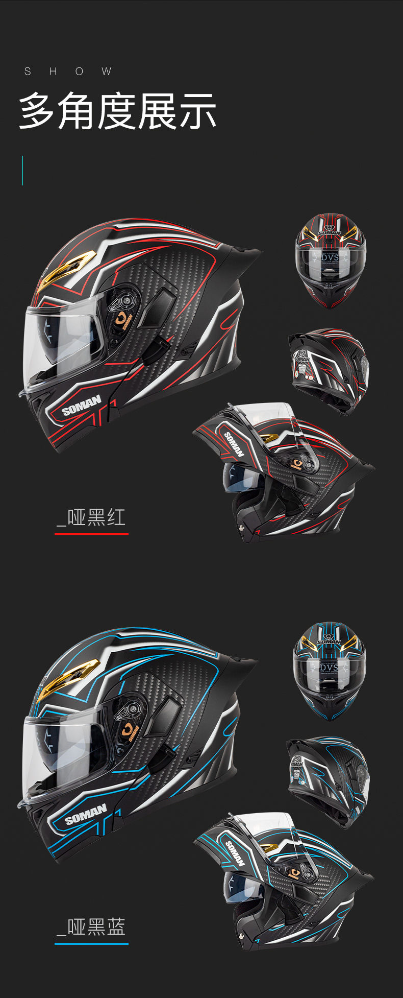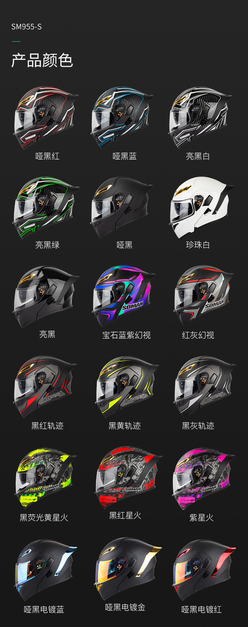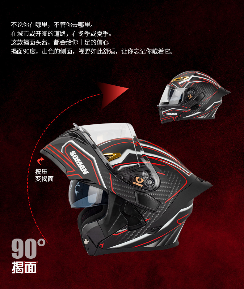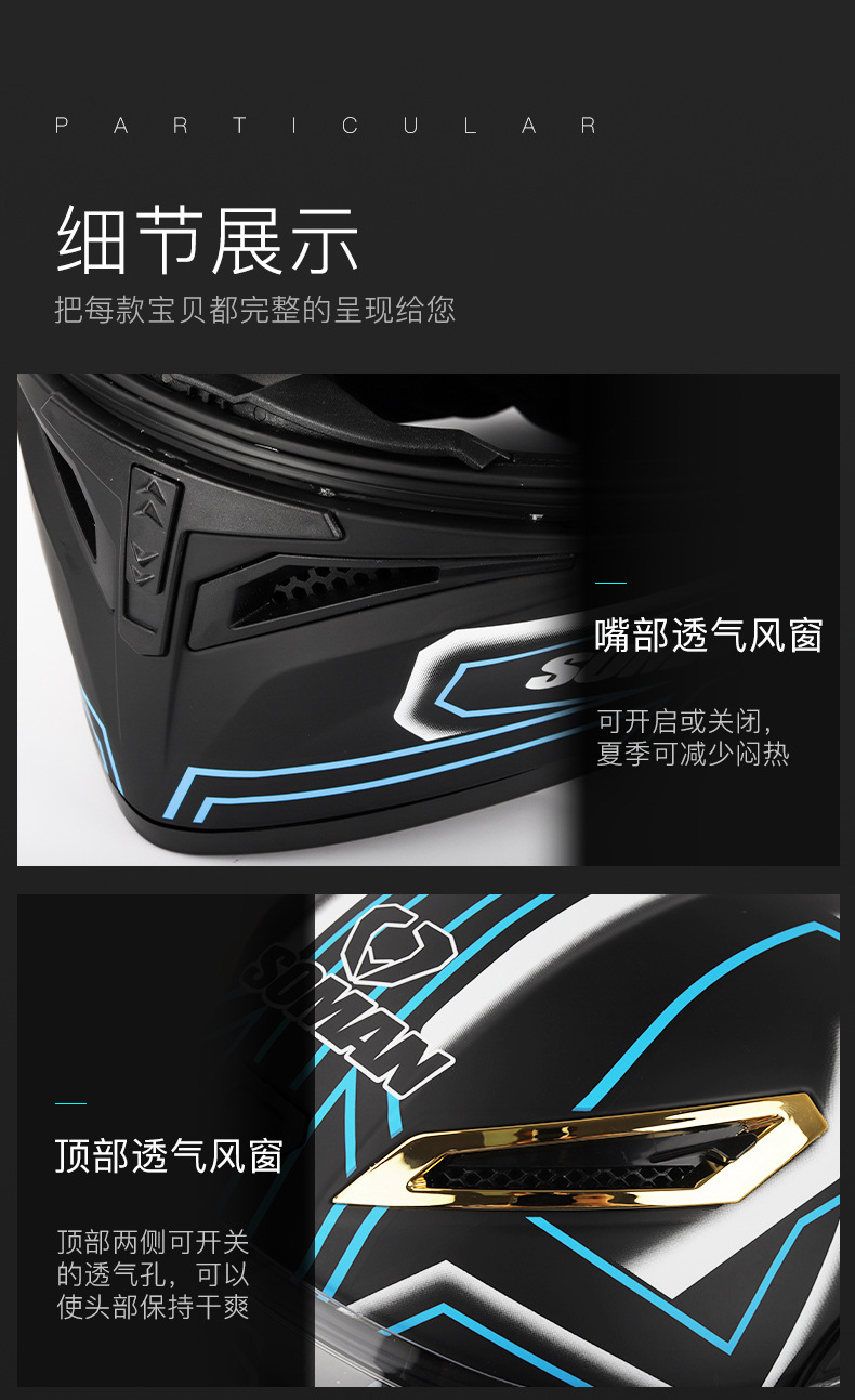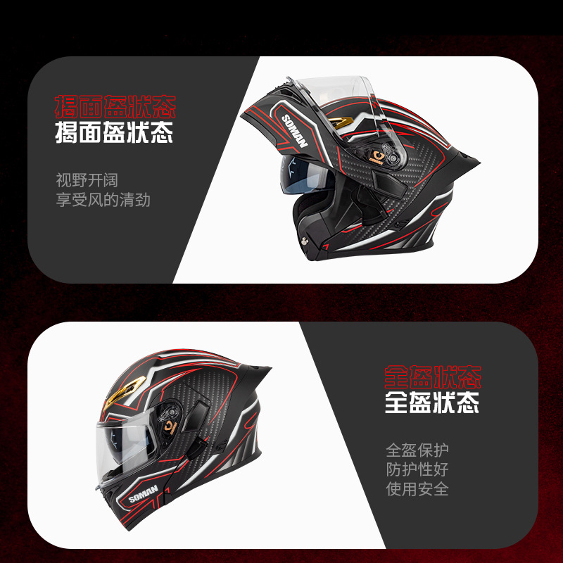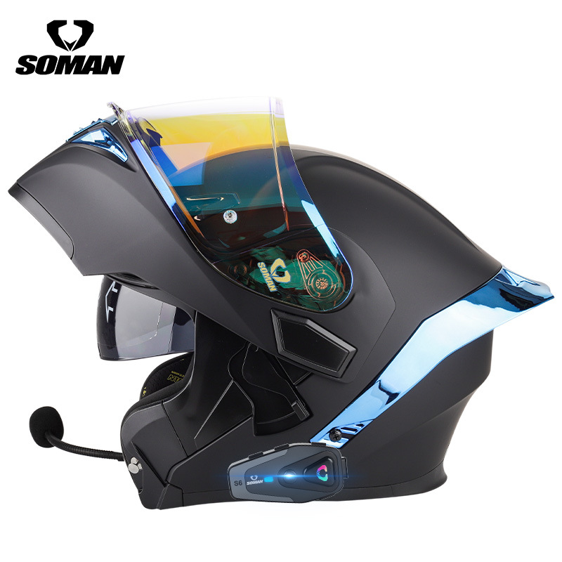 새로운 3C SOMAN 오토바이 헬멧 더블 미러 노출 헬멧 S2 인터콤 블루로 풀 헬멧 SM955-S 타고 사계절