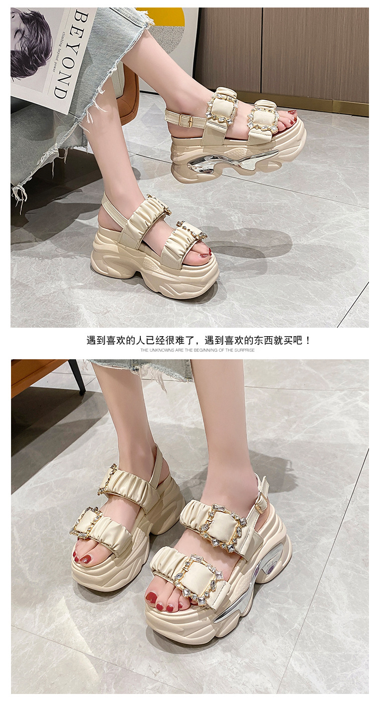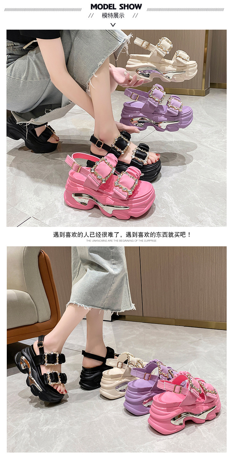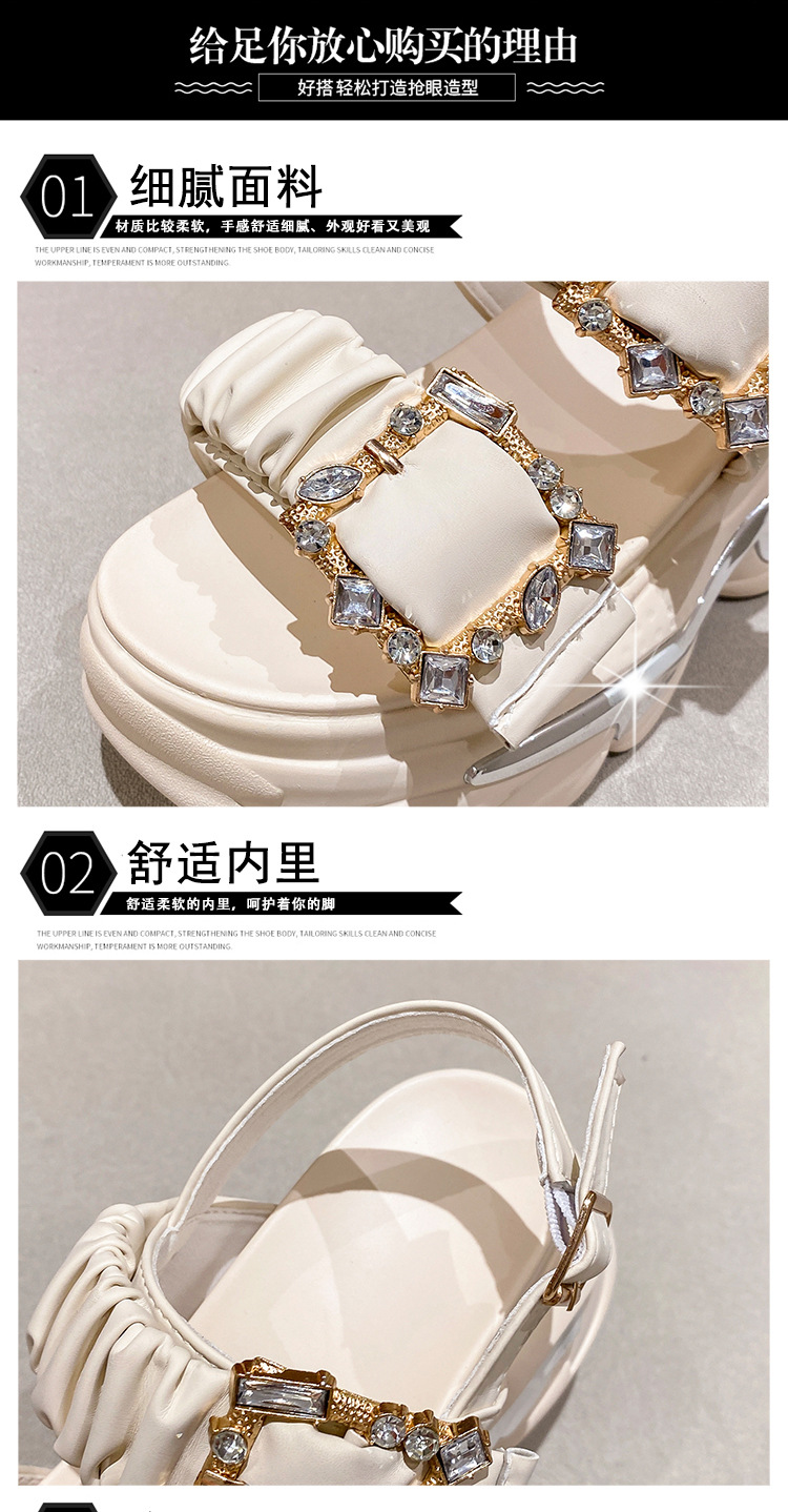 인터넷 연예인, 트렌디 플랫폼 플랫폼 샌들 여성 캐주얼 여름 새 한국식 라인스톤 버클 오픈 발가락 하이힐 샌들