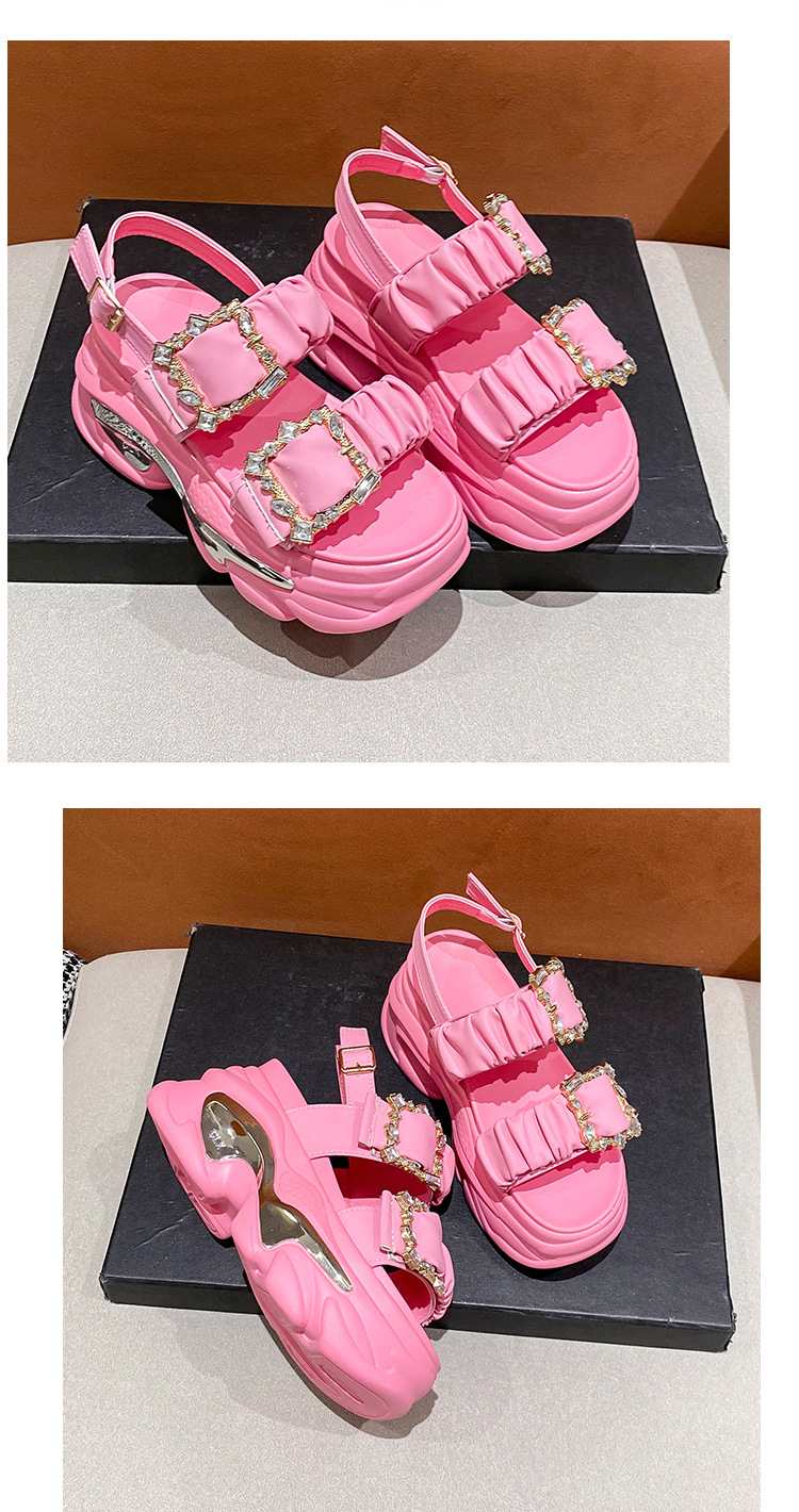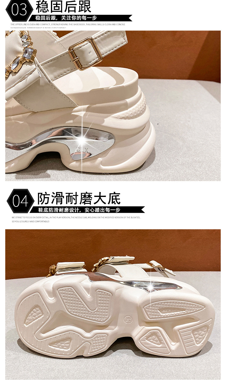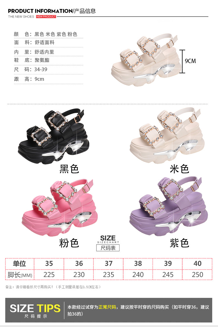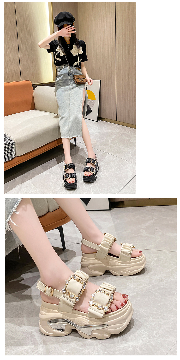 인터넷 연예인, 트렌디 플랫폼 플랫폼 샌들 여성 캐주얼 여름 새 한국식 라인스톤 버클 오픈 발가락 하이힐 샌들