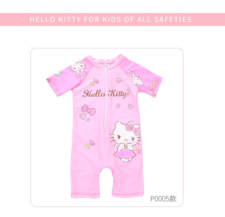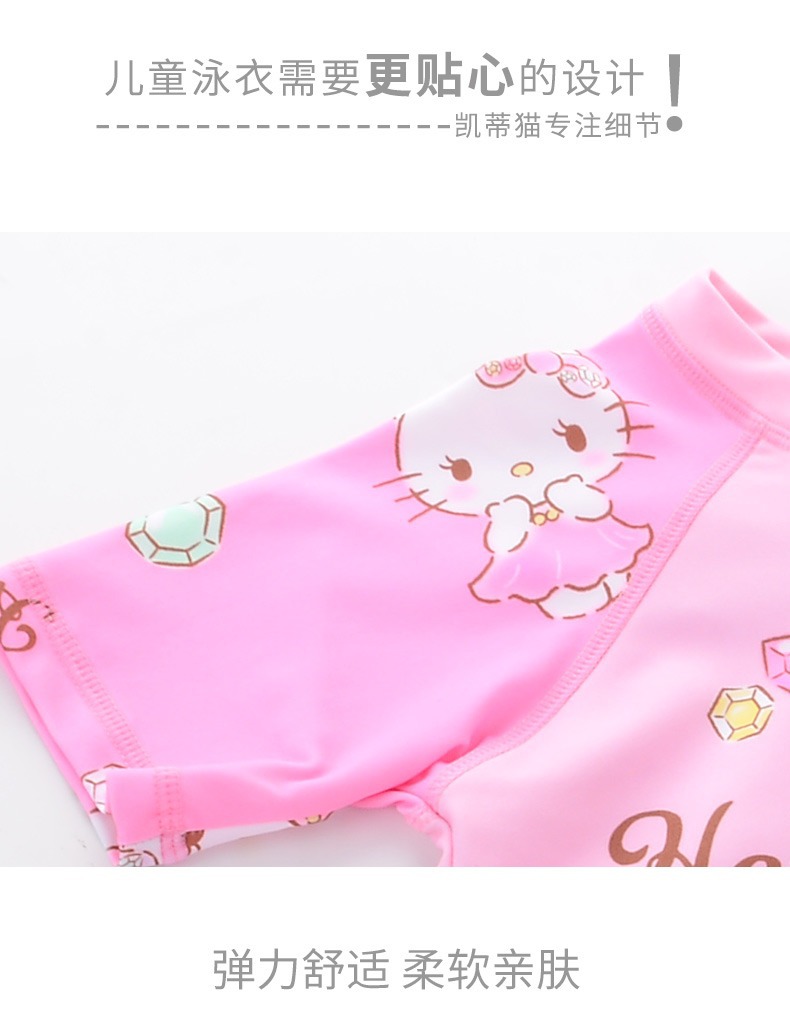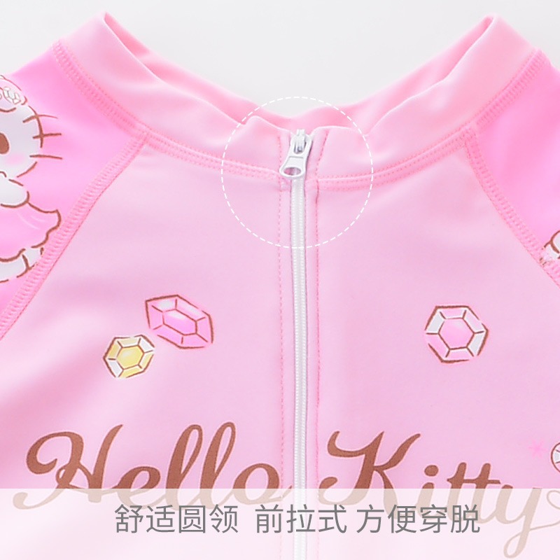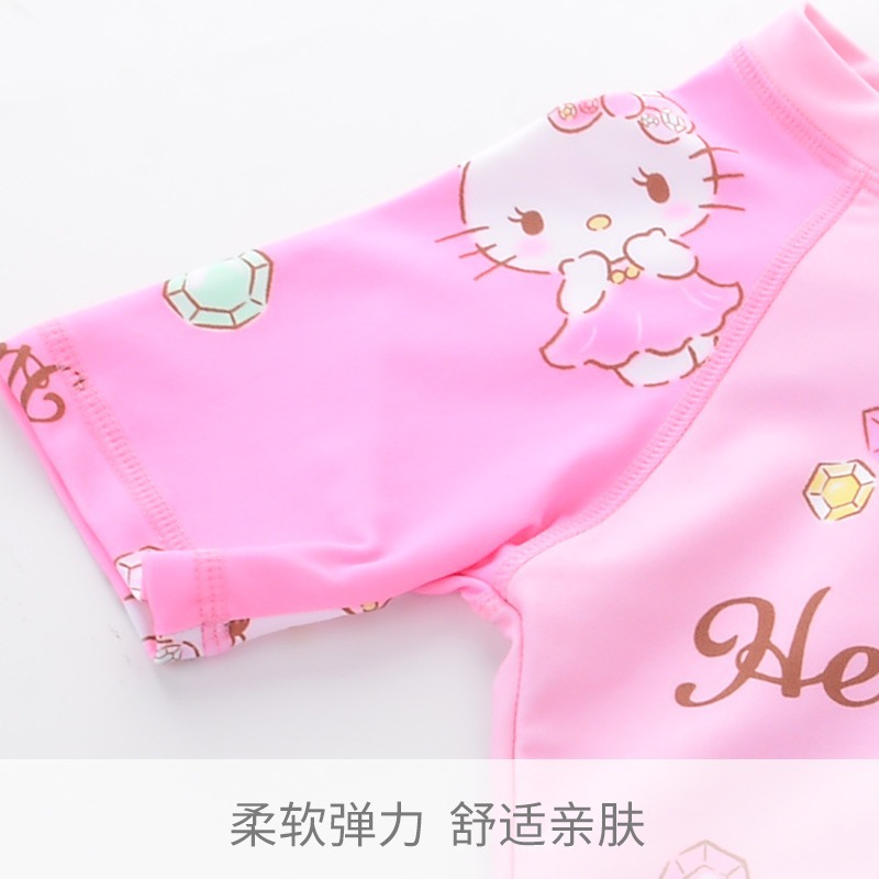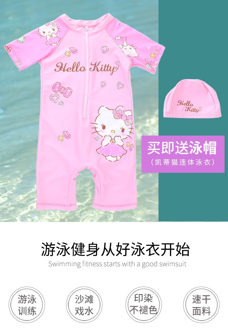 헬로키티 아동용 원피스 수영복 여아 여름용 중대형 어린이 수영복 및 수영모 세트 2025년 신상