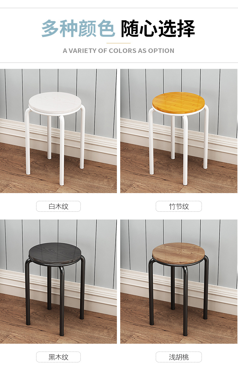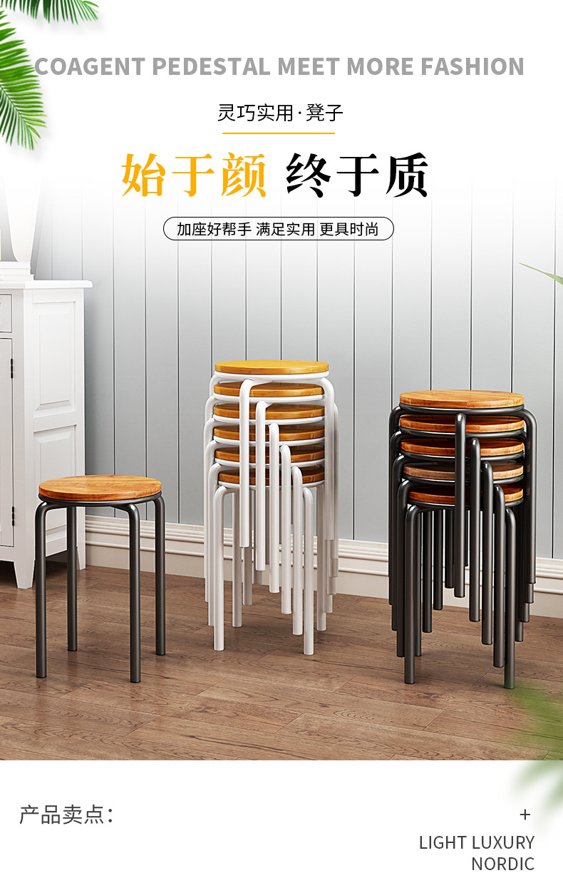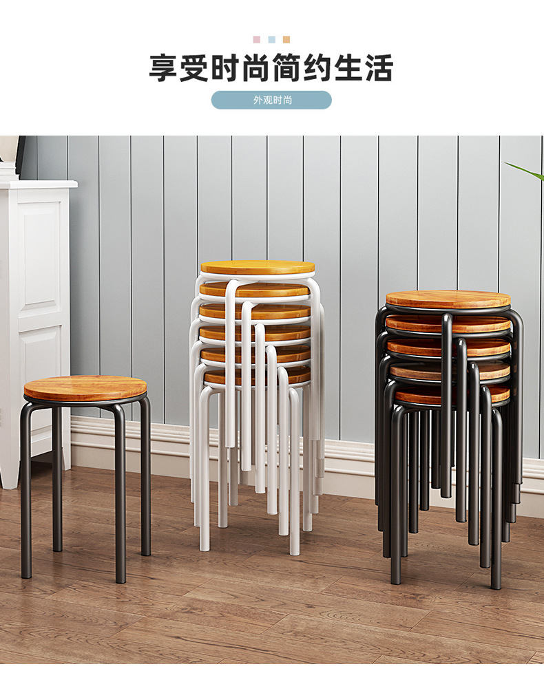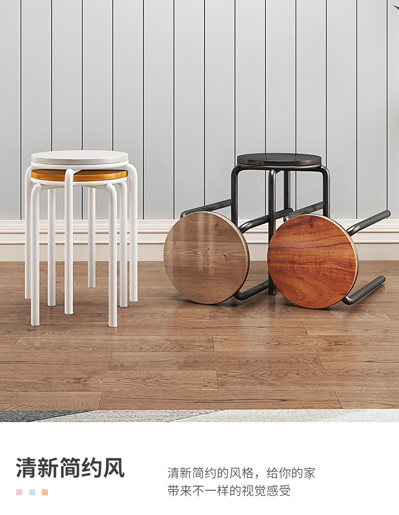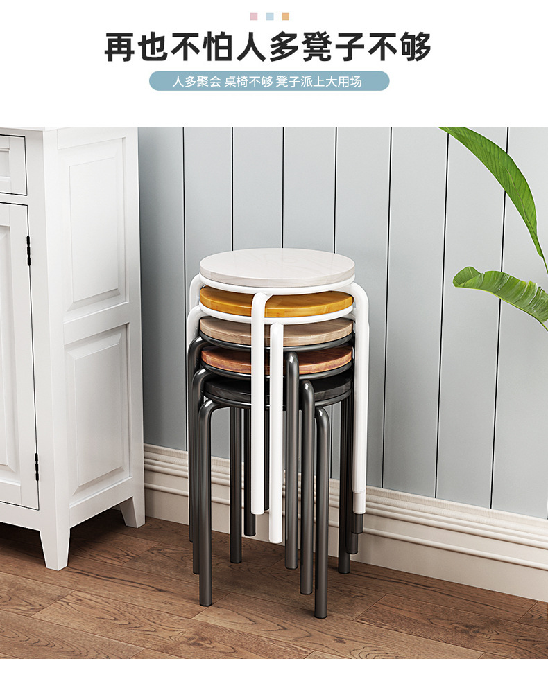 가정용 식탁 의자, 모던하고 심플한 디자인, 두꺼운 소재로 쌓을 수 있는 작은 원형 의자, 레스토랑 및 호텔용, 소량 도매, 두껍고 내구성 있음