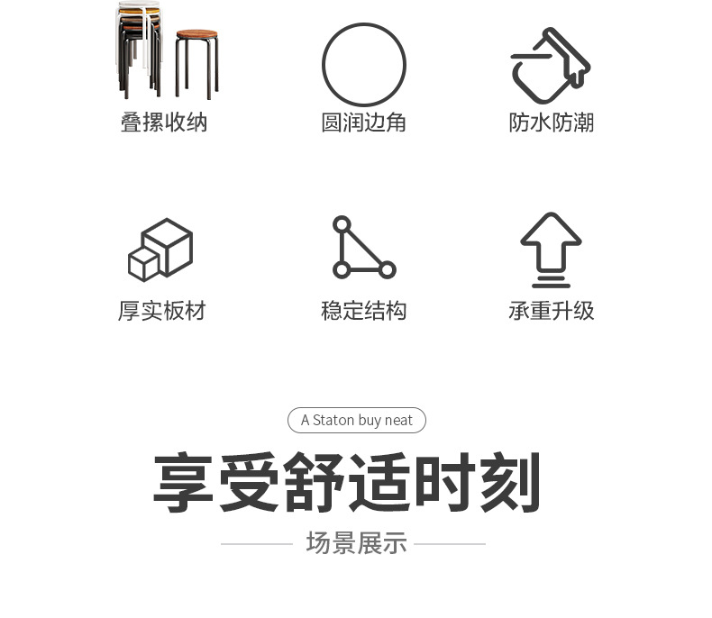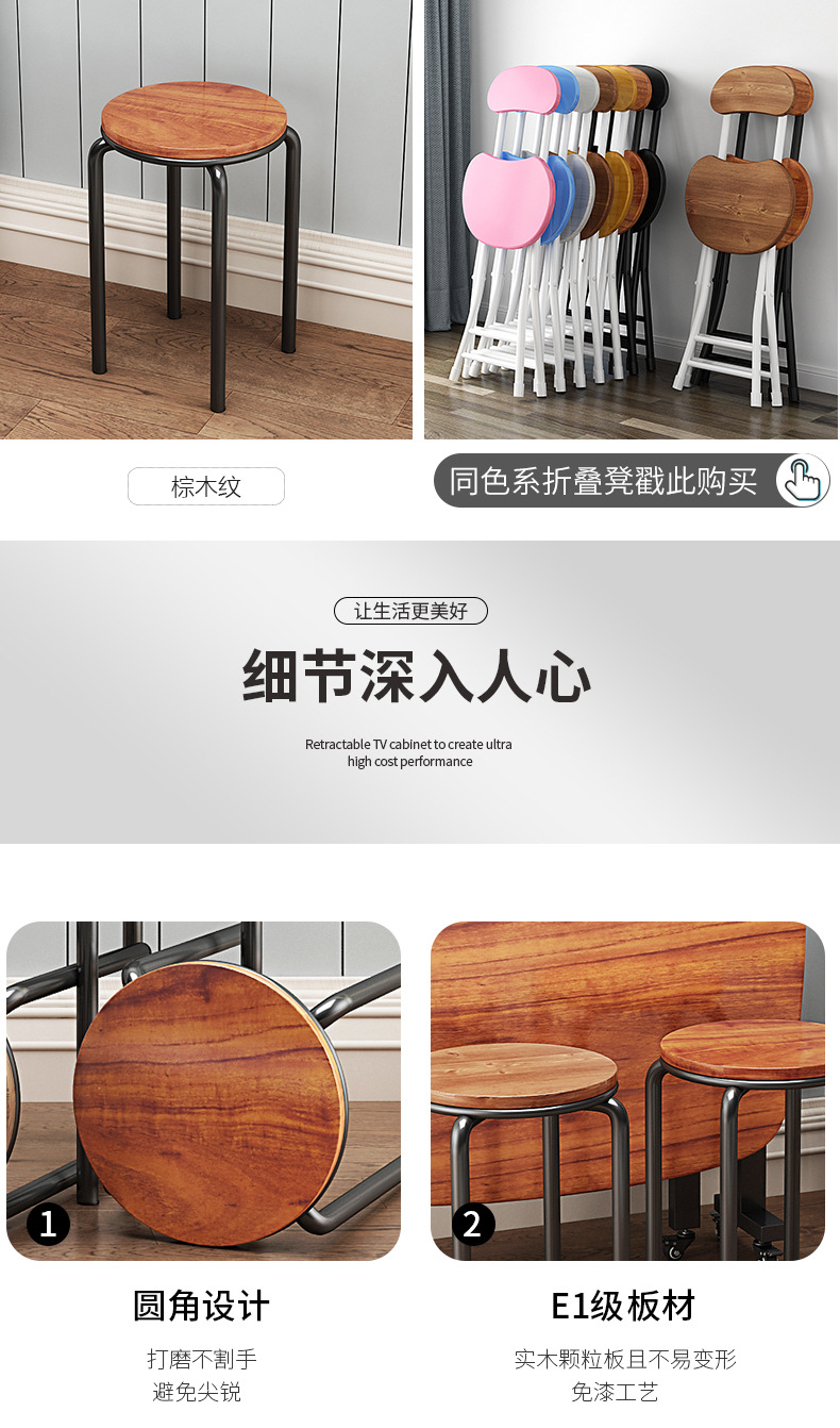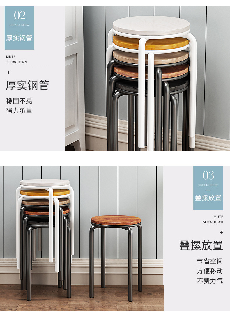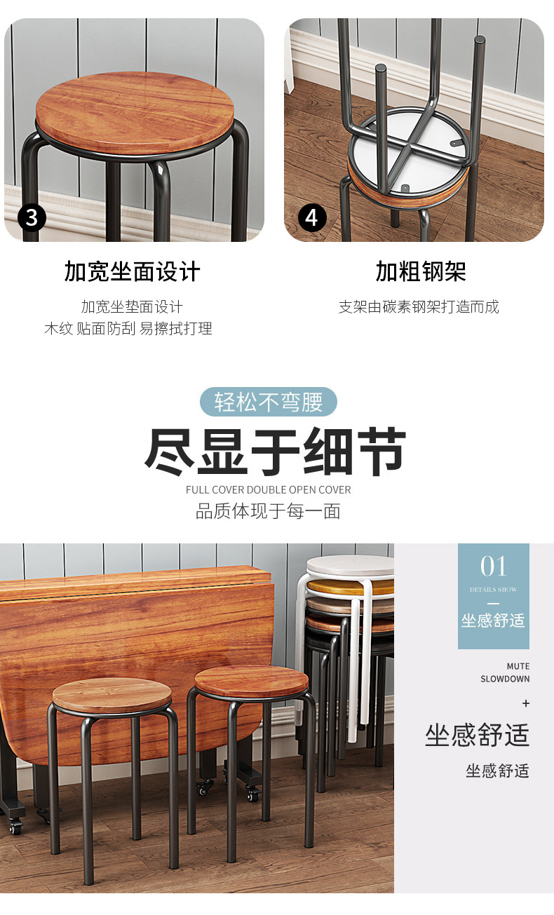 가정용 식탁 의자, 모던하고 심플한 디자인, 두꺼운 소재로 쌓을 수 있는 작은 원형 의자, 레스토랑 및 호텔용, 소량 도매, 두껍고 내구성 있음