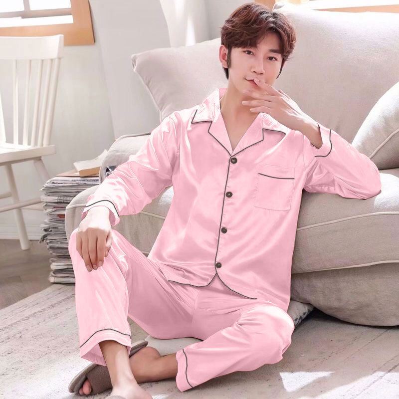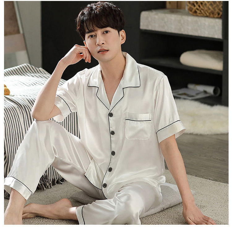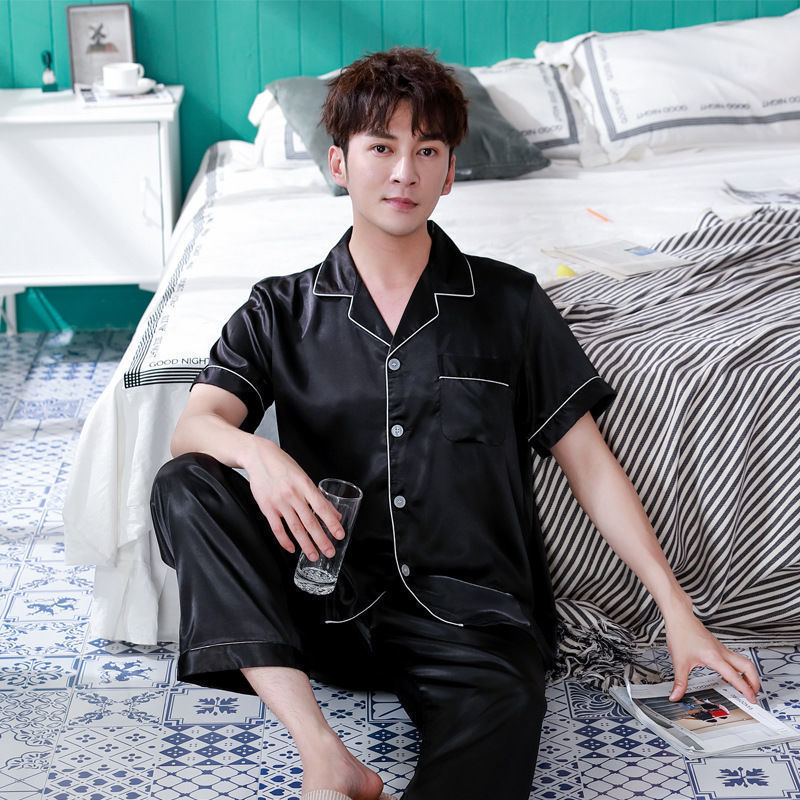 봄과 가을 남성 잠옷 2026 신상 긴팔 얇은 아이스 실크 여름 청소년 홈웨어 실크 세트 대형 사이즈