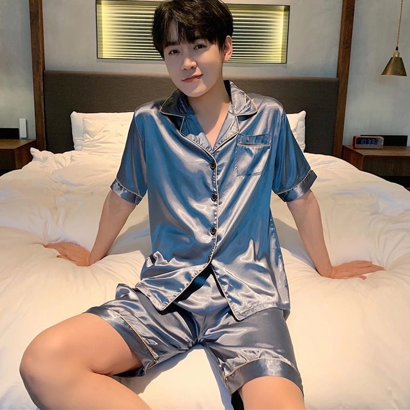 S 그레이 블루 # 더블 짧은 남성 아이스 실크