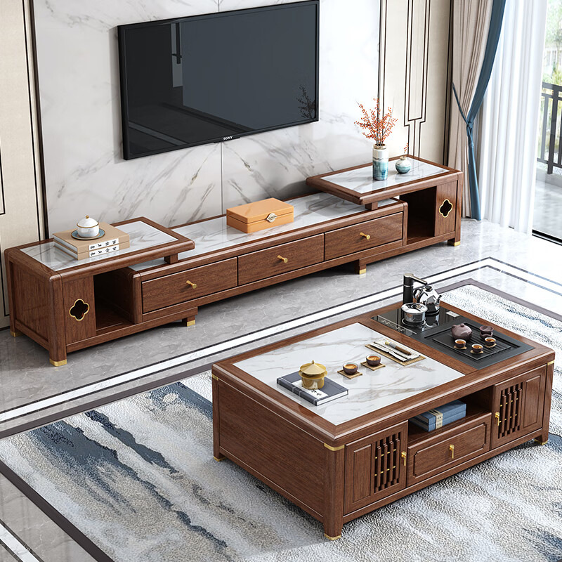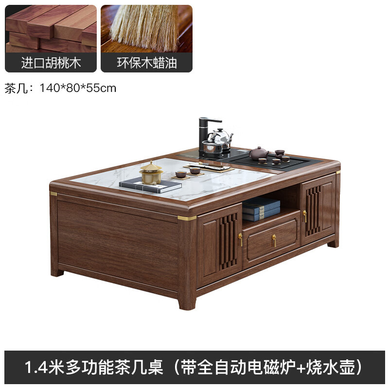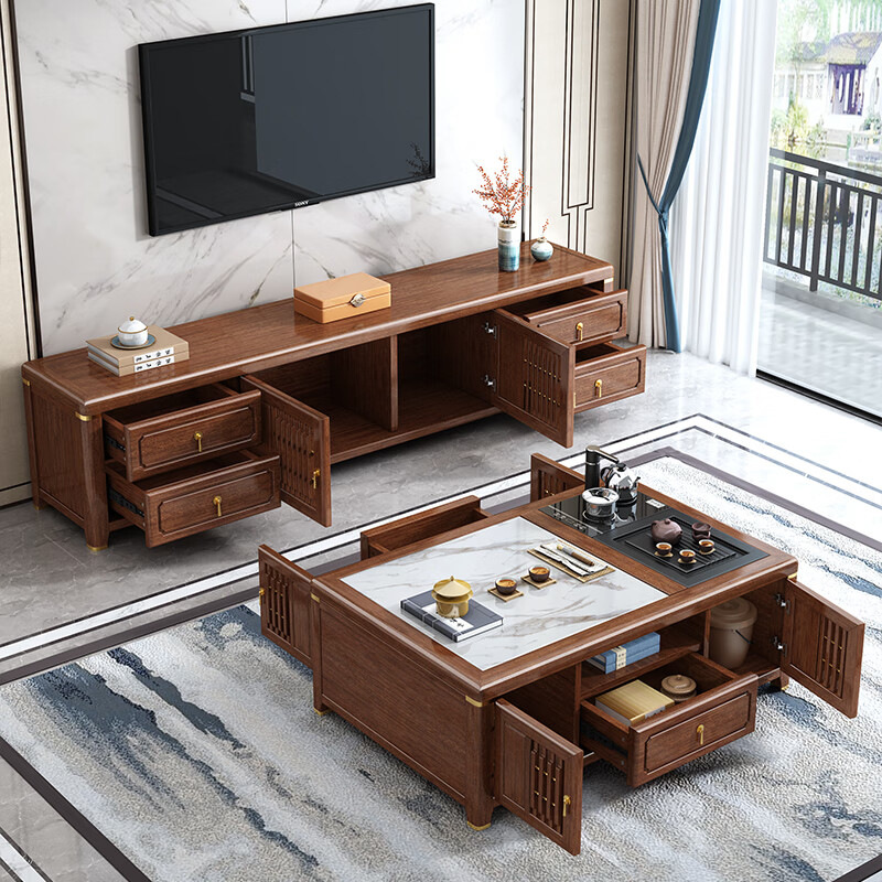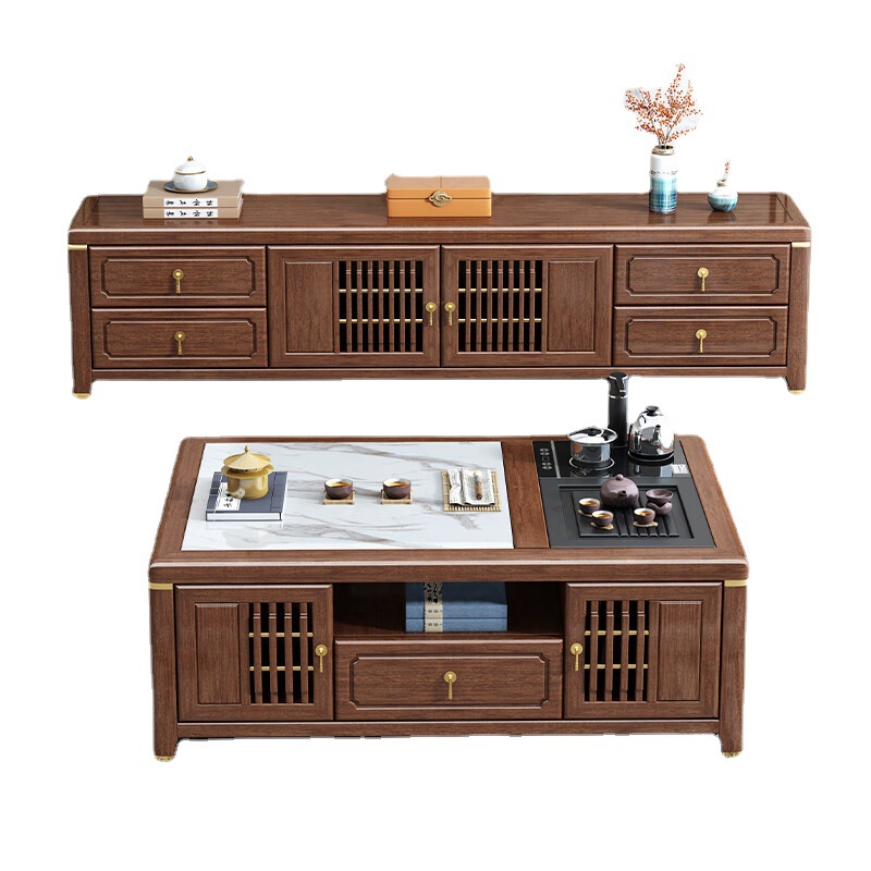 새로운 중국 스타일 단단한 나무 다기능 쿵푸 커피 테이블 거실 작은 아파트 호두 테이블 차 테이블 통합 차 테이블