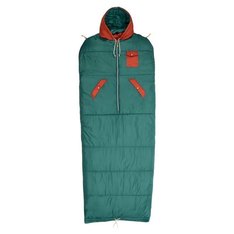 此款睡袋是最好的野营发明,它是完全可以转换的,双面都可穿戴,拉链在肩膀上,所以你可以伸出你的手臂,在底部一小块,就可以打开它,把腿伸出来举到腰部捏起来,就可以变成一件蓬松的外套围着篝火,然后回到你的帐篷..适合夏季旅行、沙发冲浪、音乐节、滑雪板冲浪或任何其他的户外活动。它在室内不会太热,冬天居家也可以很舒适。