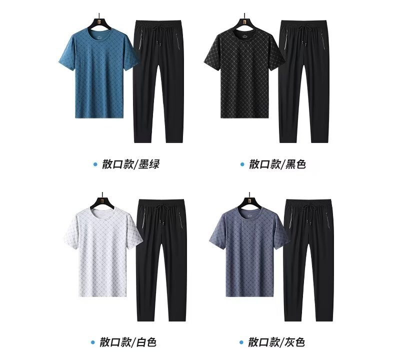 남성용 아이스 실크 캐주얼 발목 길이 바지 여름 스포츠 발목 길이 바지 얇은 비치 바지 스트레치 트렌디 반바지 발목 길이 바지