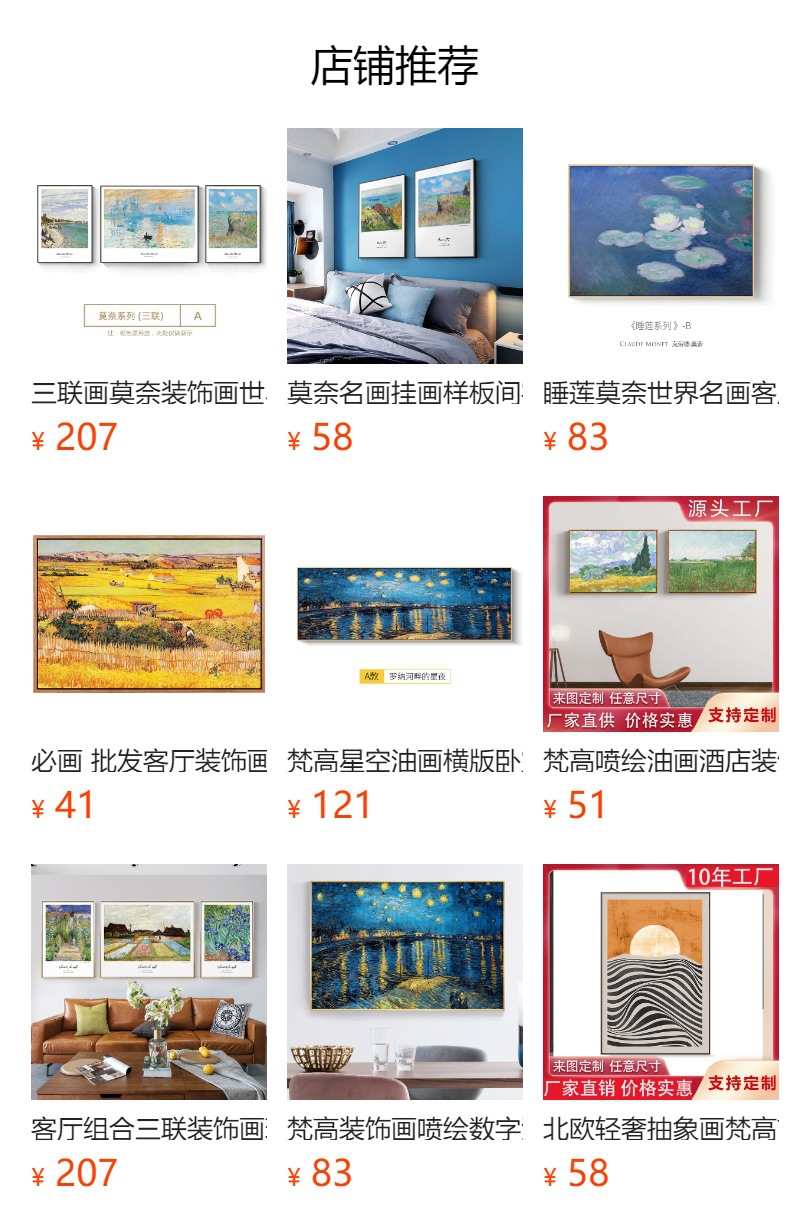 모네 침실 침대 옆 그림 장식 그림 간단한 거실 배경 그림 반 고흐 유명한 그림 매달려 그림 수평 현대 북유럽 스타일