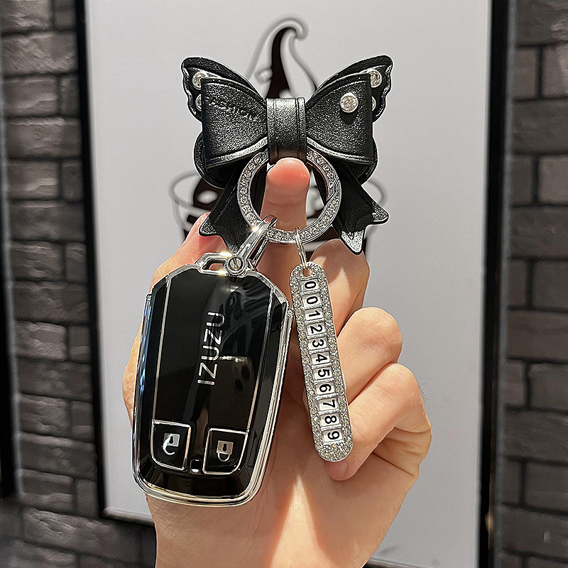 이스즈-스마트 2 키 [싱글 쉘 블랙] + 블랙 보우 다이아몬드 버클 + 실버 번호판