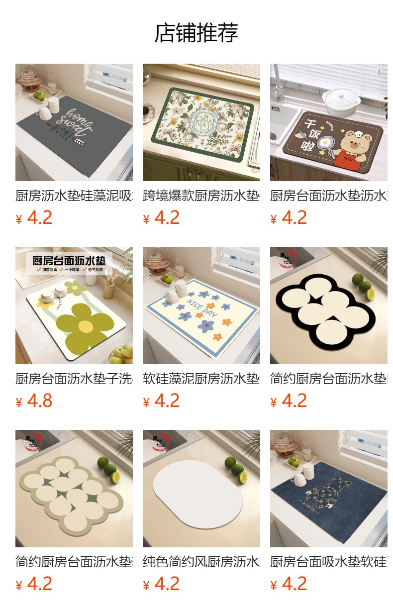 주방 조리대 흡수성 매트 부드러운 규조토 진흙 건조 매트 탁상용 식기 건조 매트 코스터 워시프리 테이블 매트 바 매트