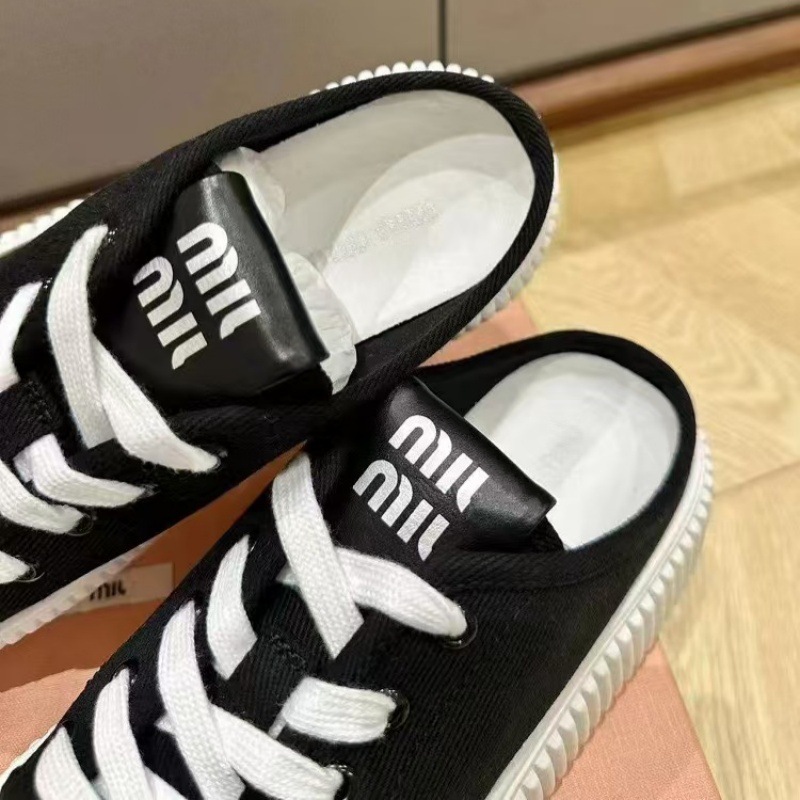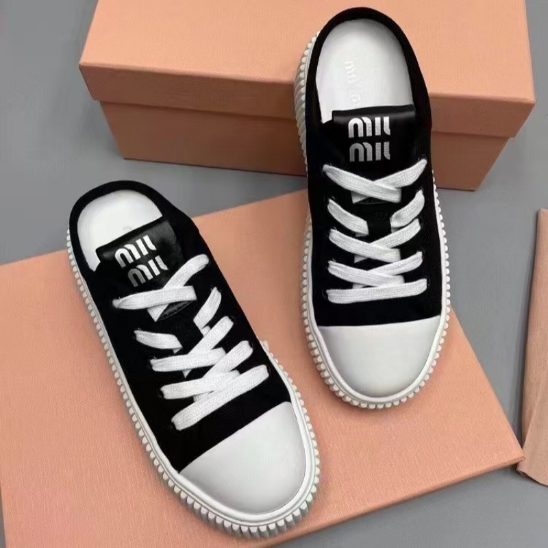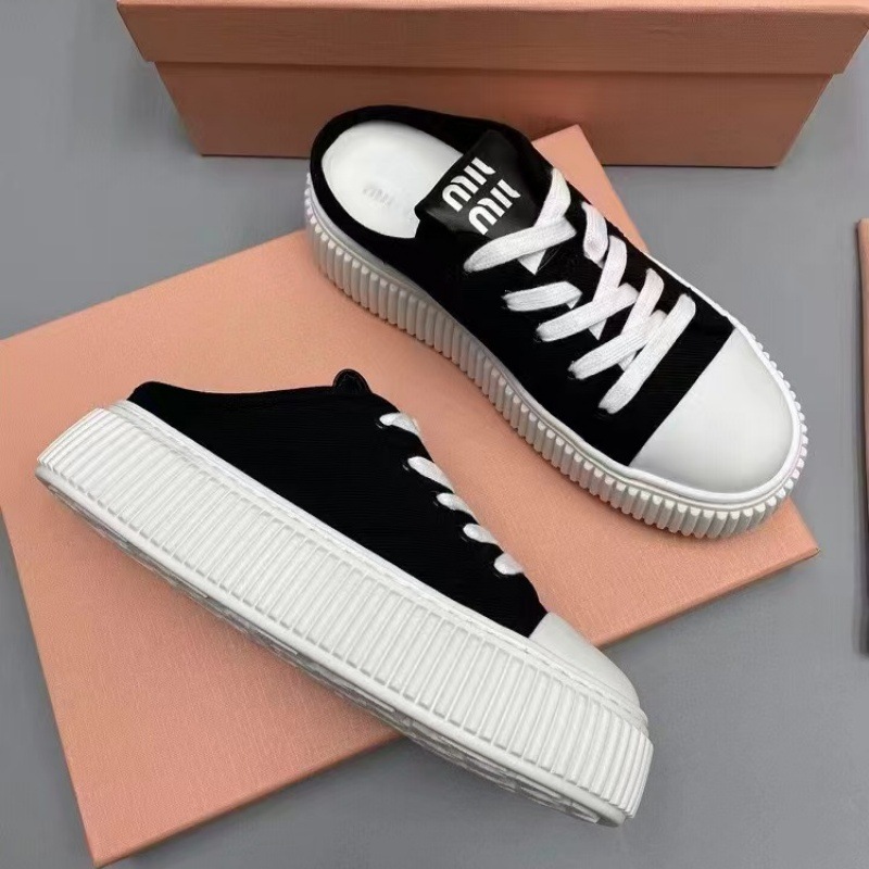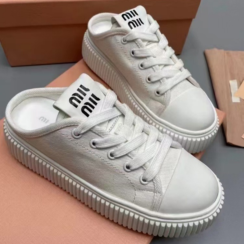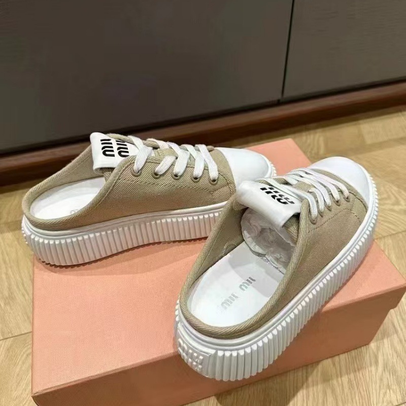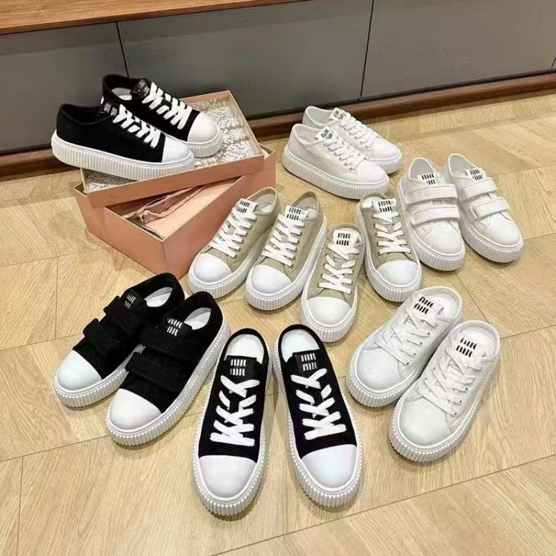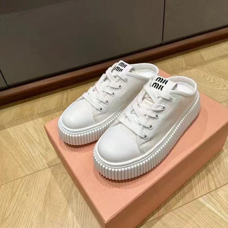 새로운 MM 홈 새로운 캔버스 신발 메시 두꺼운 바닥 여성 신발 패션 증가 경량 비스킷 빈 화이트 신발 하프 드래그