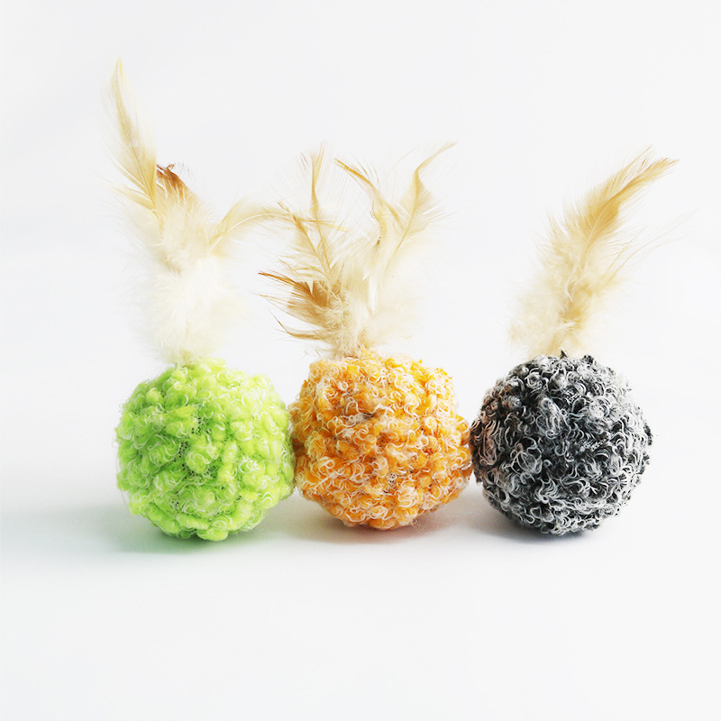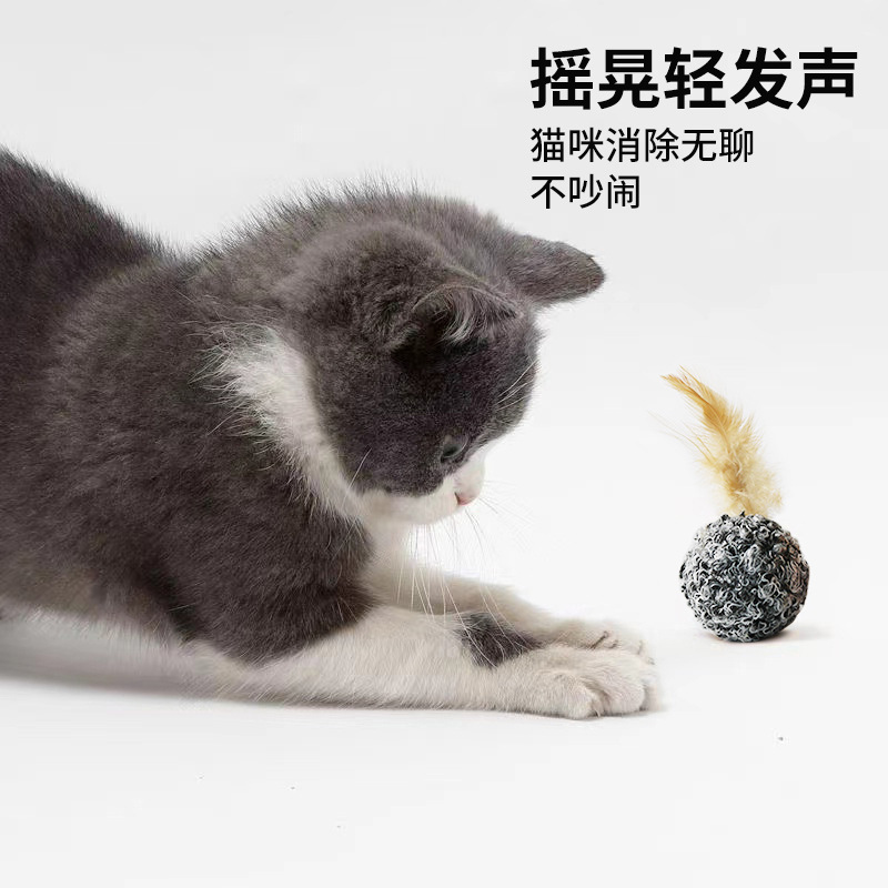 사이잘삼 공 소리 고양이 장난감 깃털 봉제 공 고양이 쫓는 공 셀프 하이 플레이 애완 동물 용품 도매