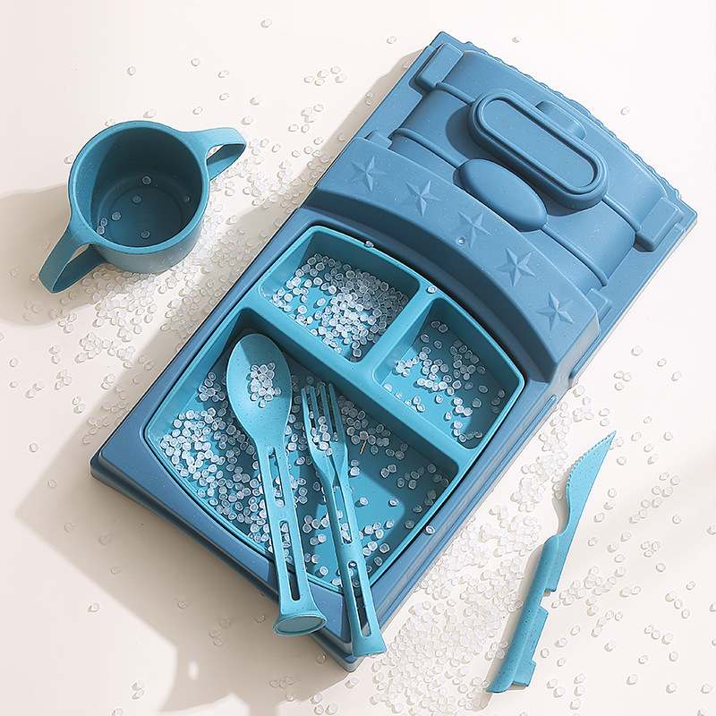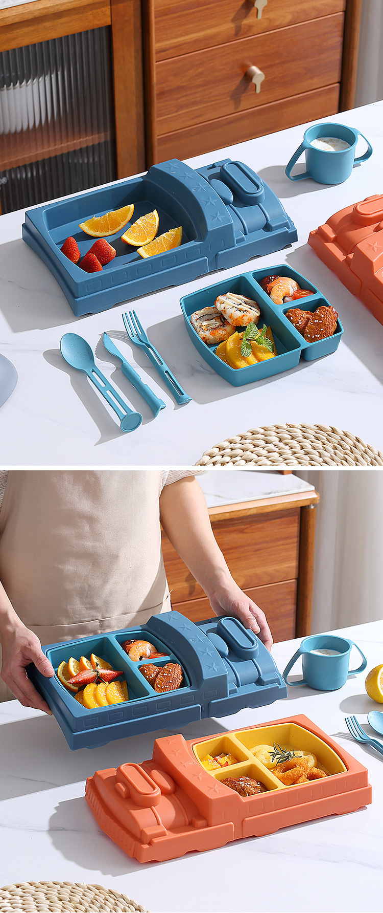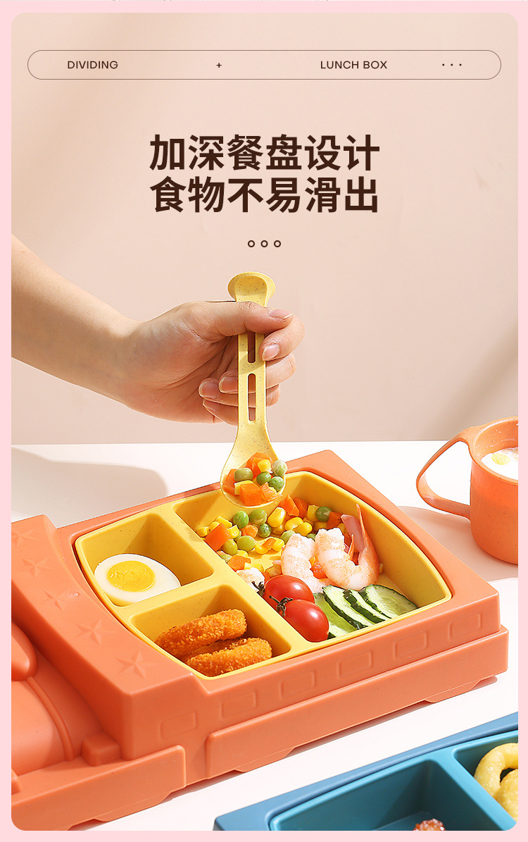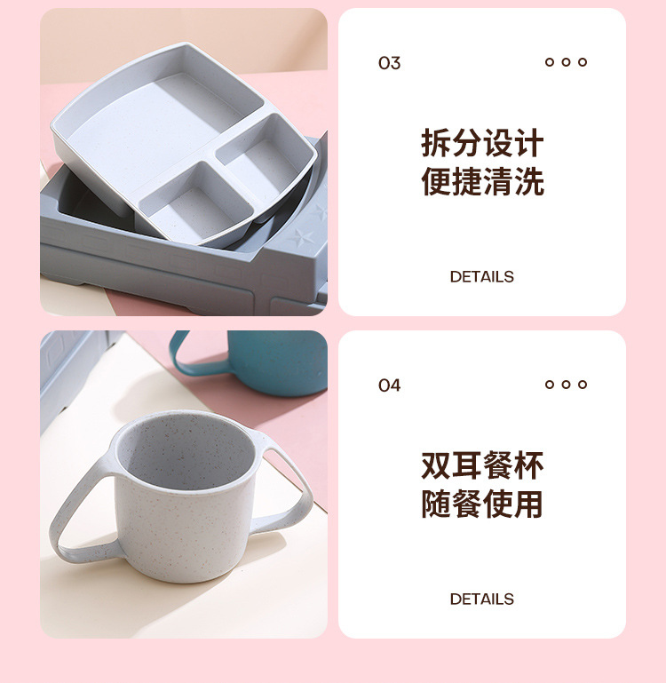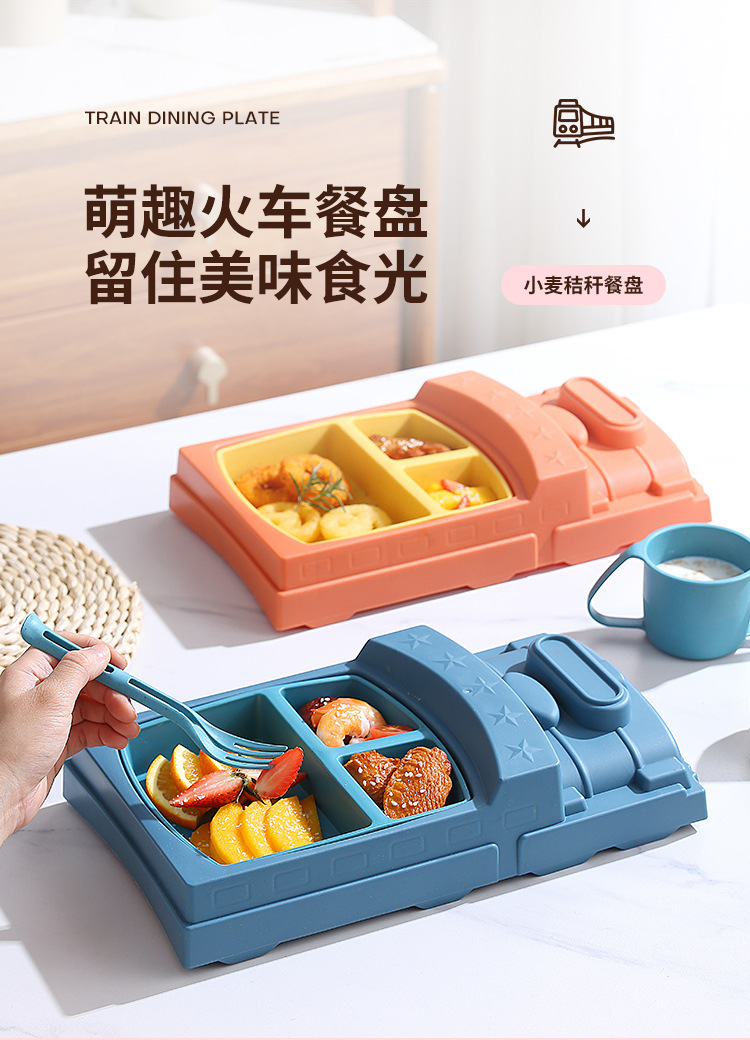 밀짚 어린이 기차 저녁 식사 접시 유치원 아기 하위 음식 접시 낙하 방지 식기 세트 제조 업체 도매