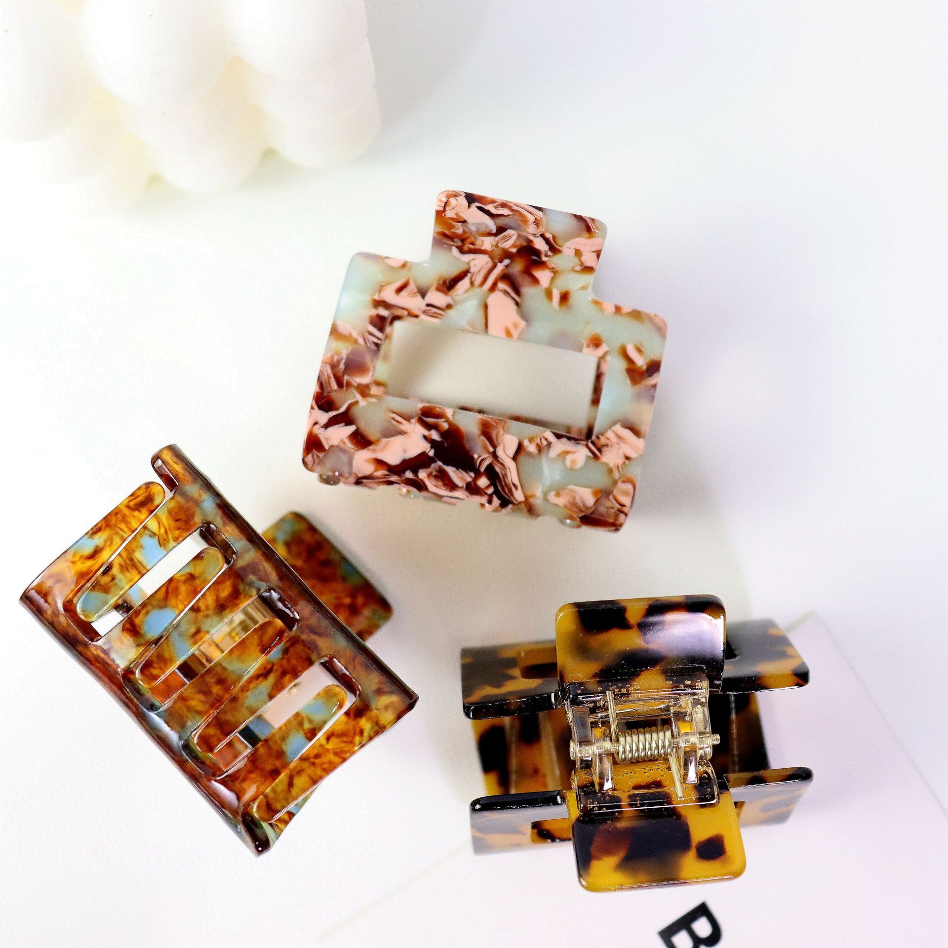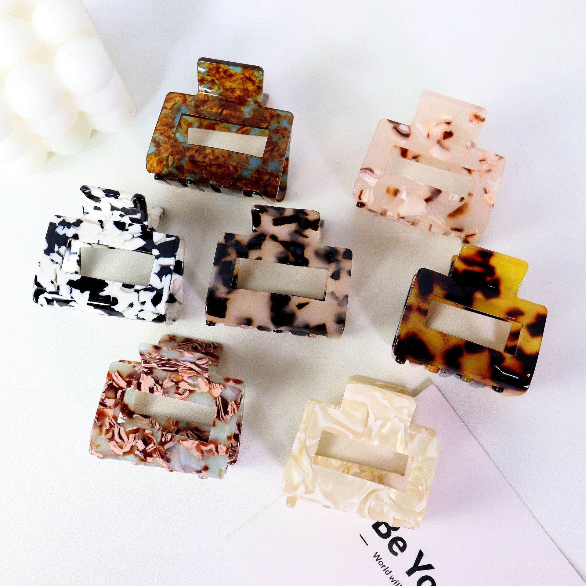 코어 모에 패션 한국 아세트산 헤어 액세서리 5cm 할로우 할로우 스퀘어 그랩 클립 레트로 우아한 악어 클립 테일 클립