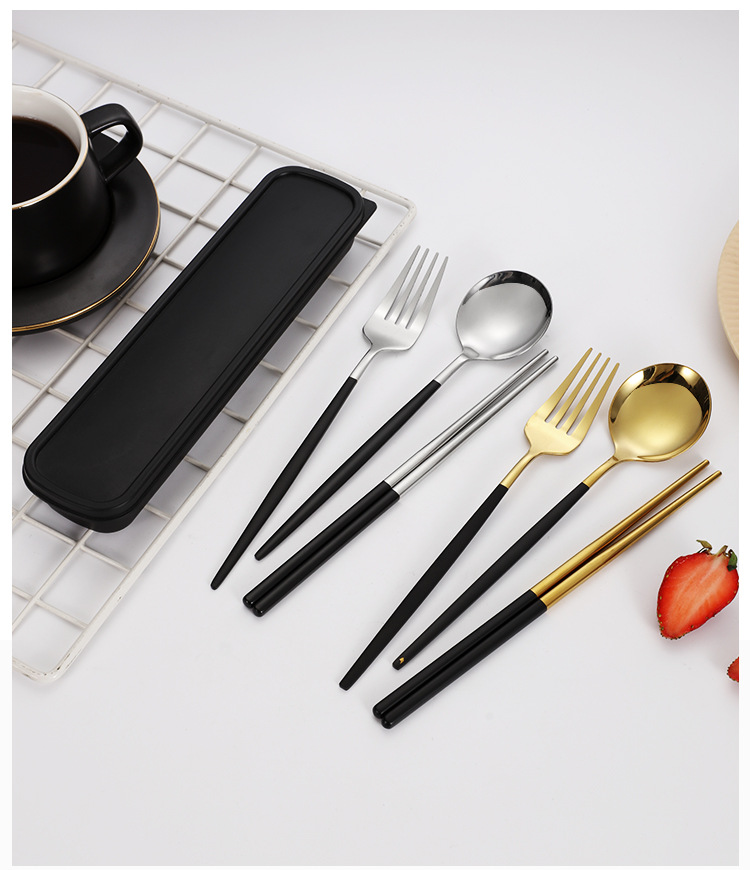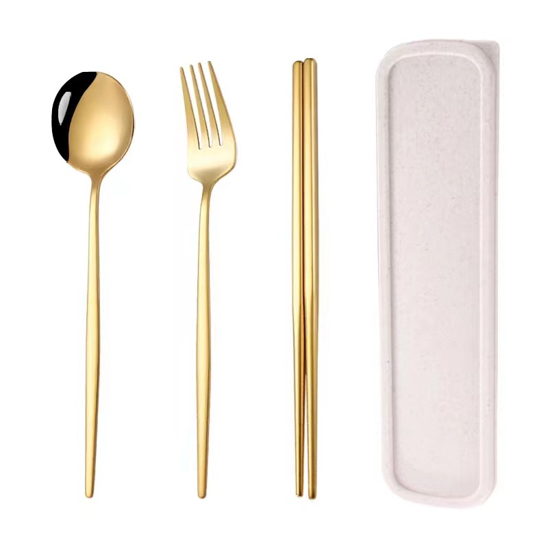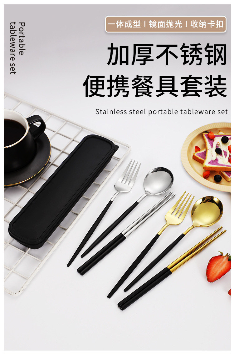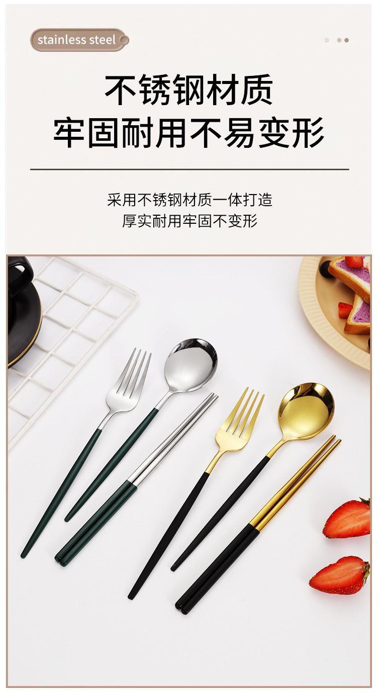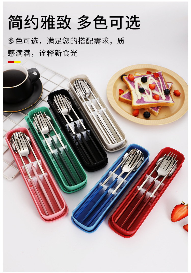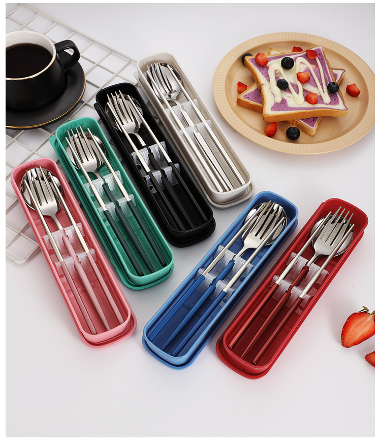 스테인레스 스틸 휴대용 식기 포크 스푼 젓가락 세트 포르투갈어 3 피스 세트 여행 캠핑 직장인 선물