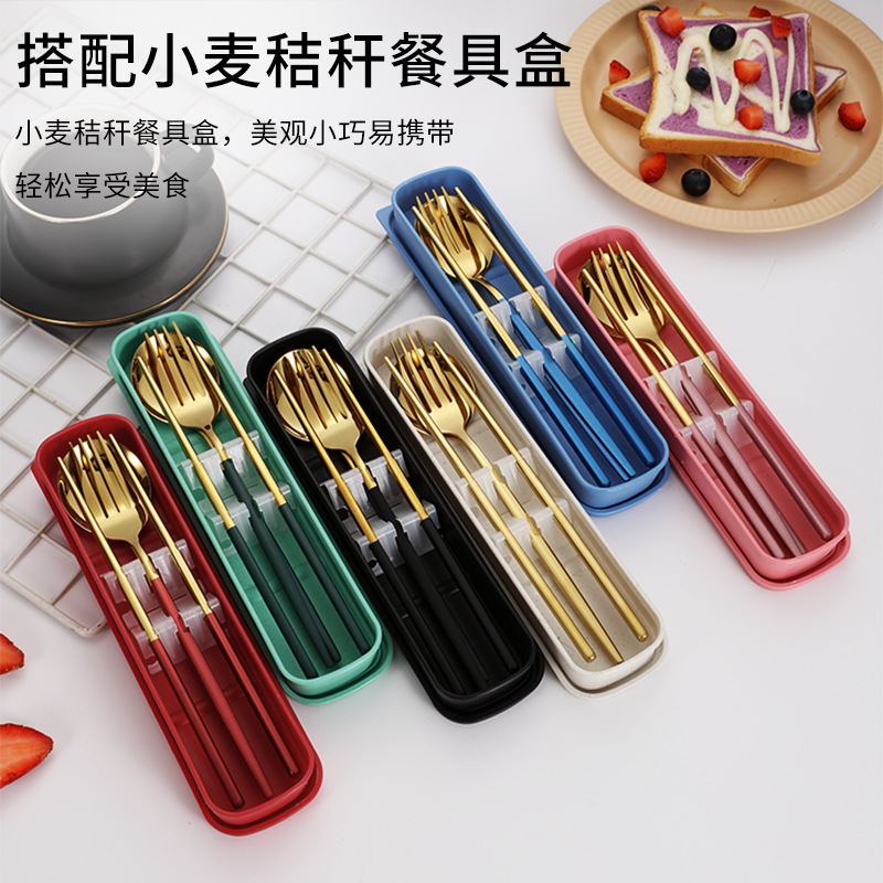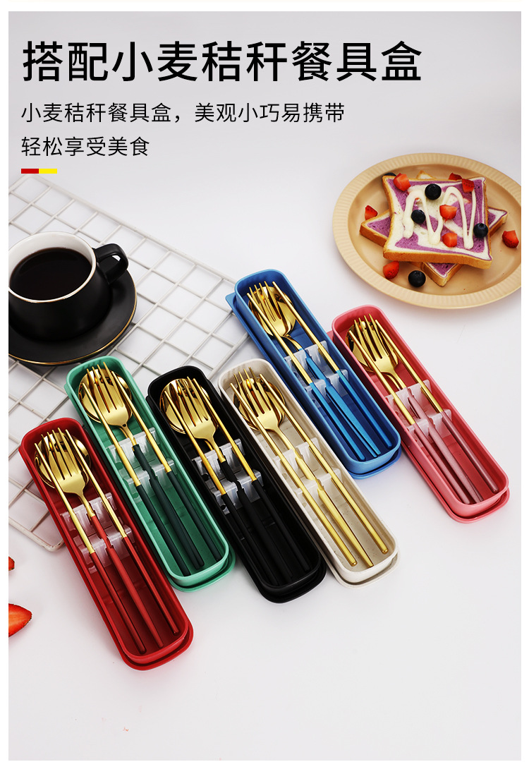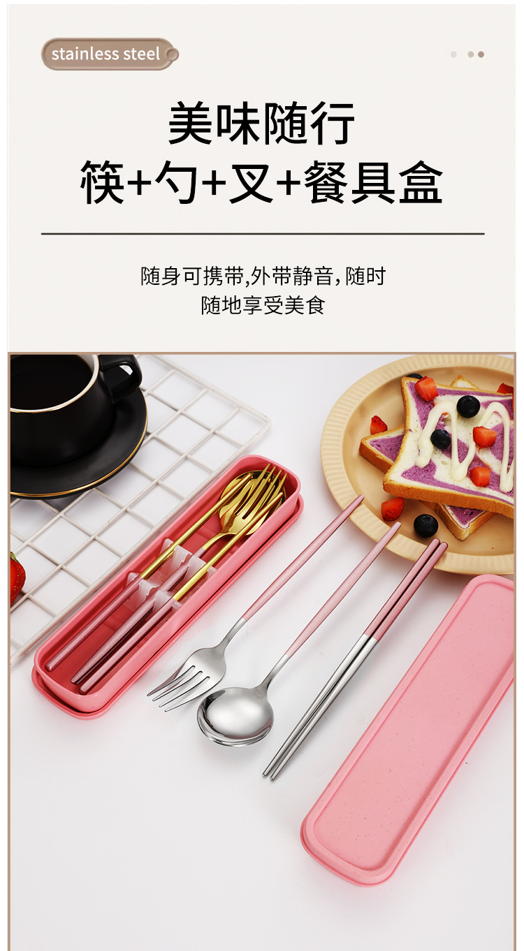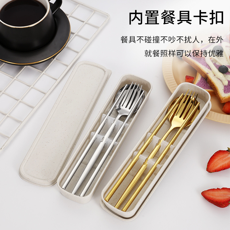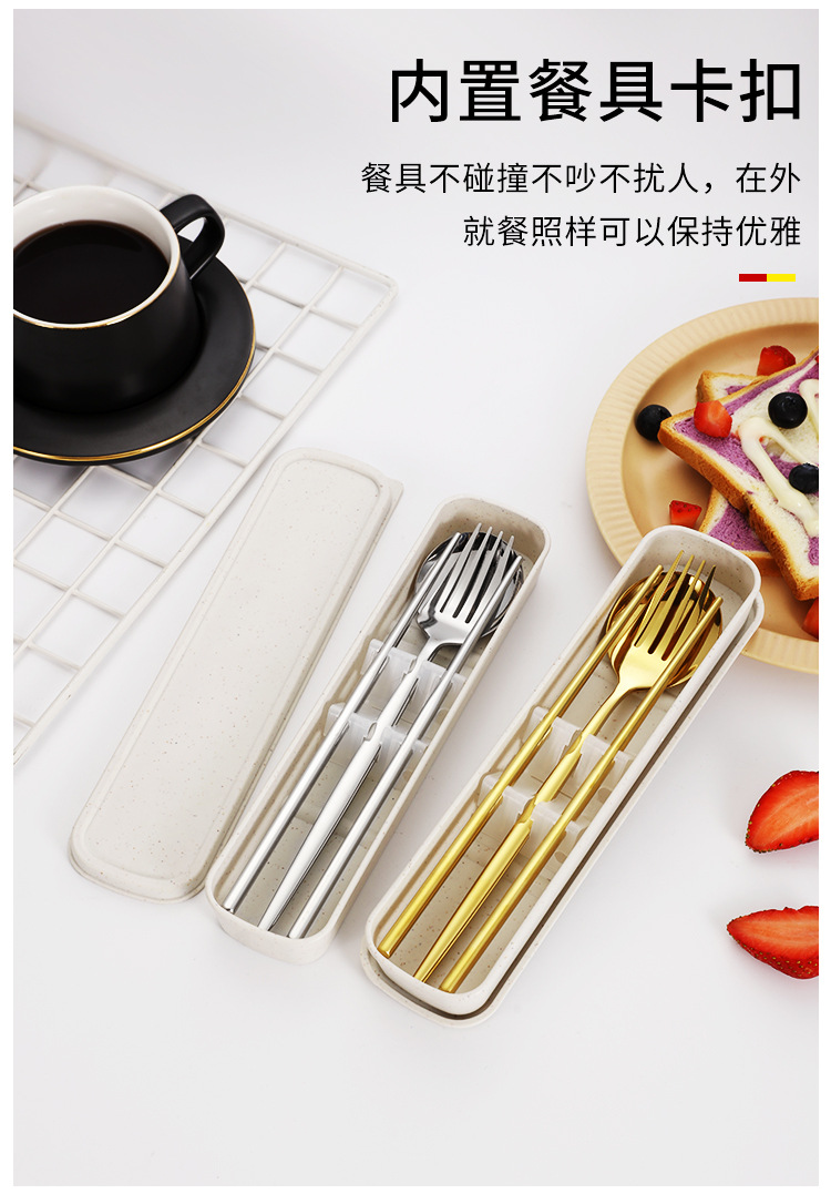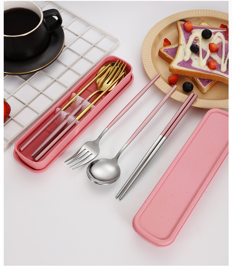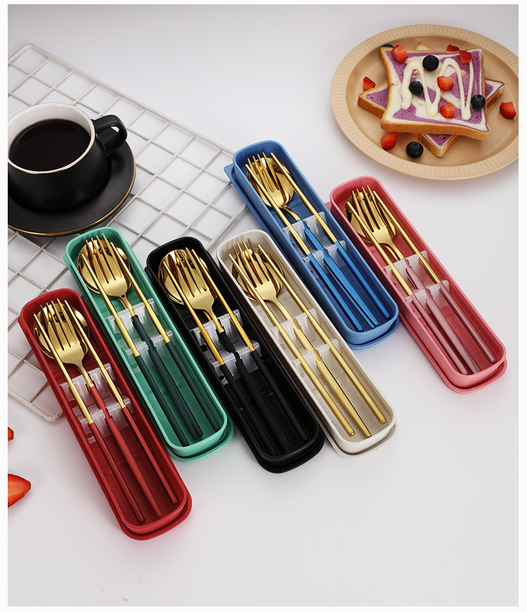 스테인레스 스틸 휴대용 식기 포크 스푼 젓가락 세트 포르투갈어 3 피스 세트 여행 캠핑 직장인 선물