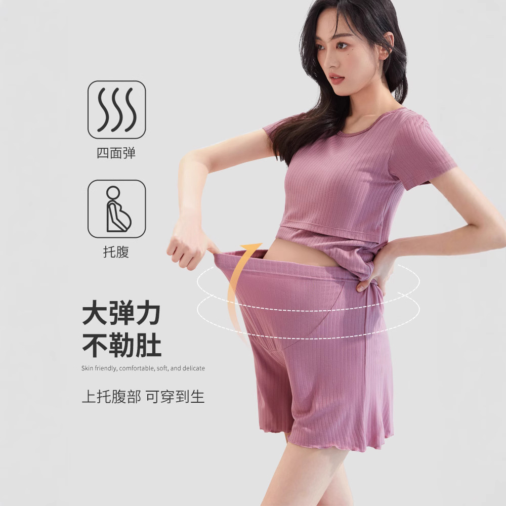 출산 잠옷 바지 여름 시즌 얇은 겉옷 하이 웨이스트 복부지지 반바지 느슨한 조절 가능한 가정용 바지 통기성 플러스 사이즈